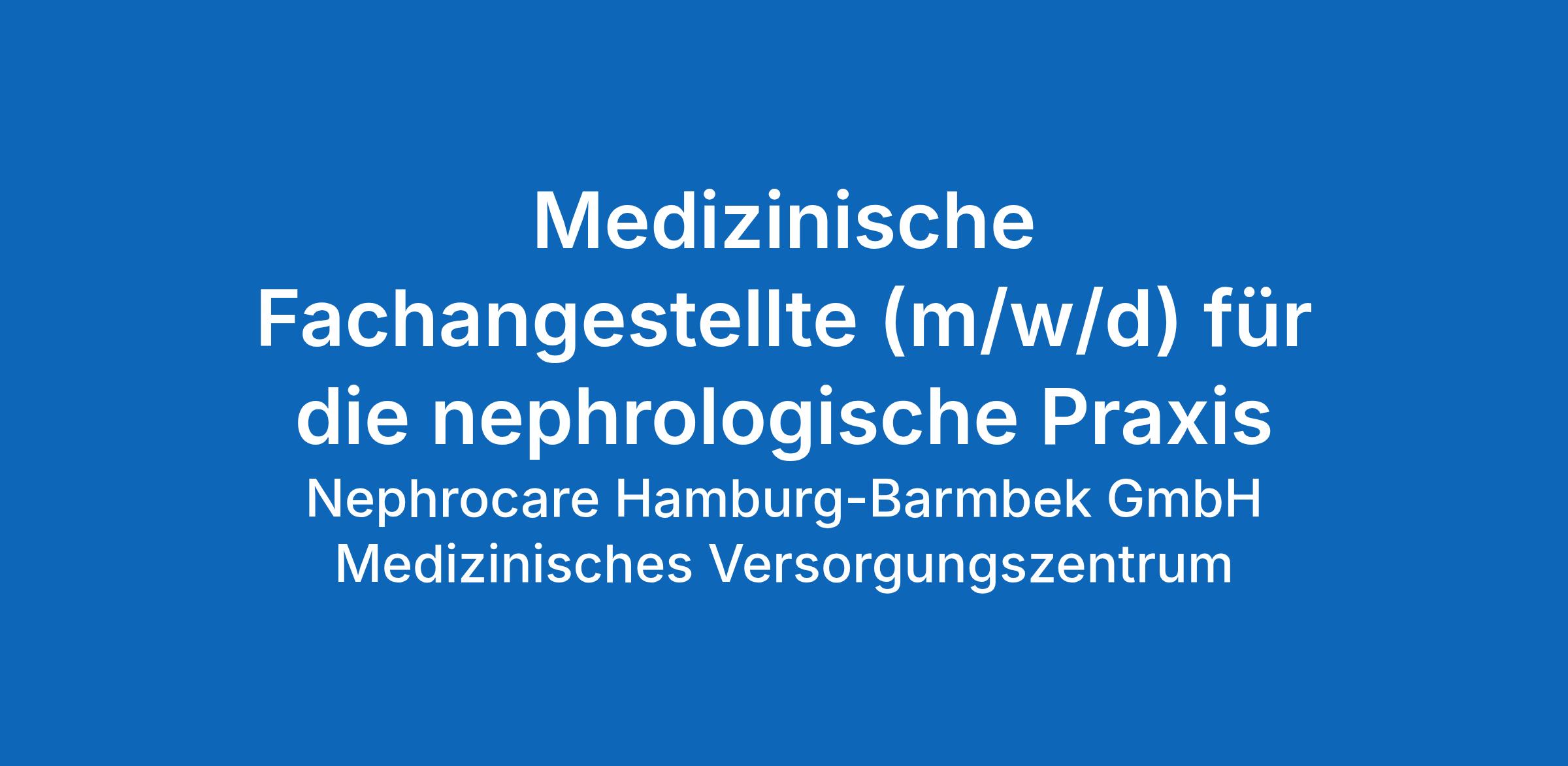 Arbeitsort: Nephrocare Hamburg-Barmbek GmbH, Medizinisches Versorgungszentrum, Hebebrandstraße 6, 22297 Hamburg