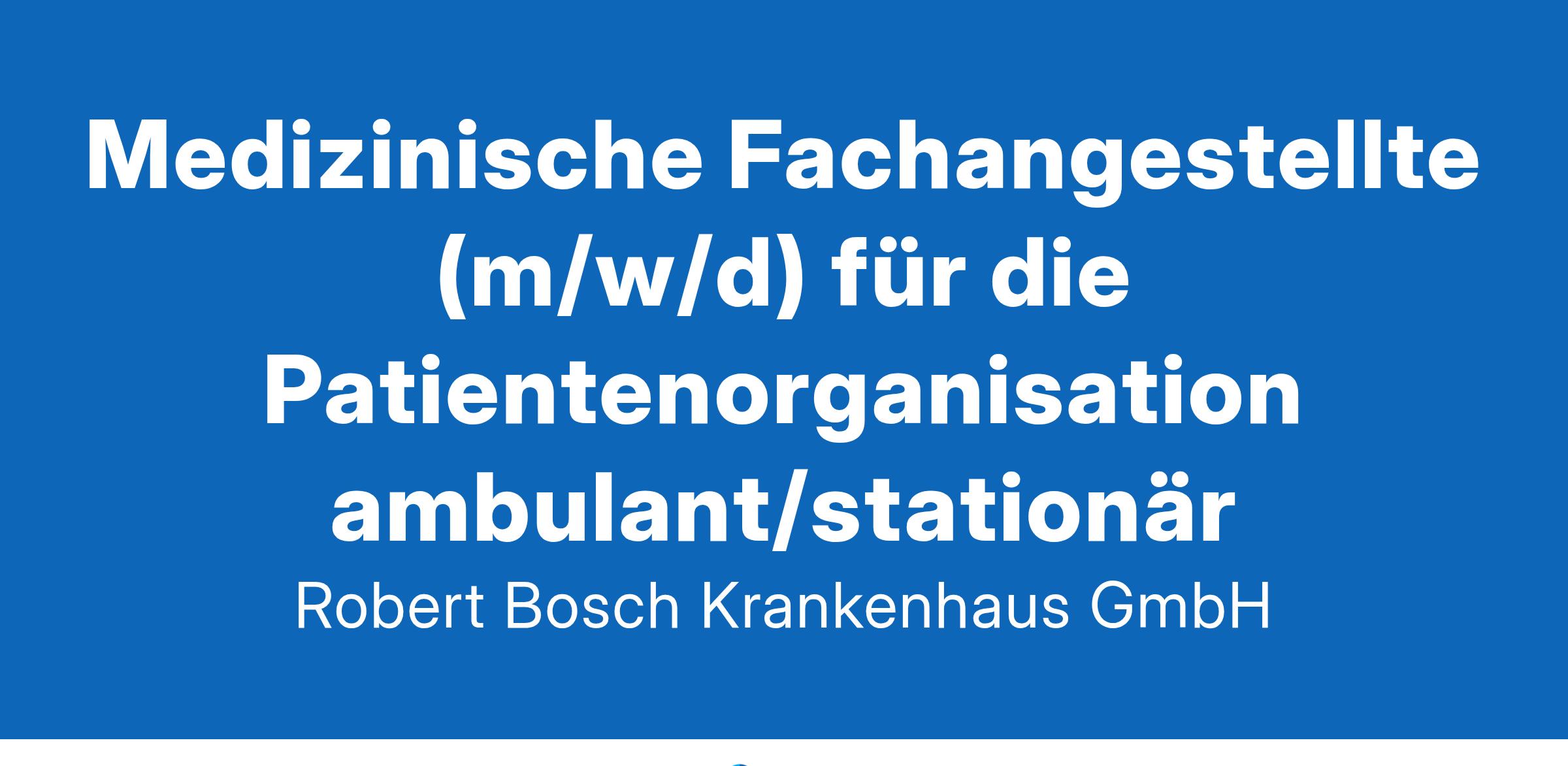 Beschäftigungsumfang: VollzeitUnternehmensbeschreibungDas Robert Bosch Krankenhaus (RBK) ist eine Einrichtung des Bosch Health Campus der Robert Bosch Stiftung mit mehreren Standorten in Stuttgart. Als Krankenhaus der Zentralversorgung mit Funktionen der Maximalversorgung und 1.191 Betten nimmt das RBK mit dem RBK Lungenzentrum Stuttgart, dem Robert Bosch Krankenhaus Standort City sowie der Klinik für Geriatrische Rehabilitation im Jahr bis zu 40.000 Patienten stationär auf. Zum Krankenhausbetrieb mit über 3.000 Mitarbeitenden gehören 20 Fachabteilungen, über 15 Medizinische Zentren, ein Bildungszentrum sowie eine Beteiligung an einem weiteren Aus- und Weiterbildungszentrum. Der Bosch Health Campus umfasst neben dem RBK alle Forschungsinstitute und Förderaktivitäten der Robert Bosch Stiftung im Bereich Gesundheit. Für Mitarbeitende bieten sich in dieser Struktur vielfältige Entwicklungsmöglichkeiten.StellenbeschreibungÜbernahme von organisatorischen und administrativen Aufgaben, einschließlich Terminmanagement, Patientenaufnahme, Dokumentationstätigkeiten und der Koordination von Untersuchungsterminen