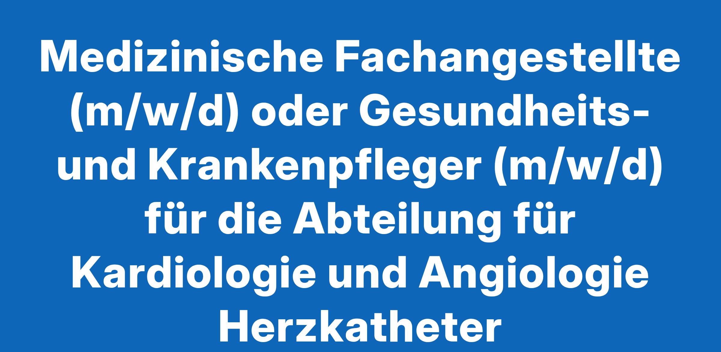 Medizinische Fachangestellte (m/w/d) oder Gesundheits- und Krankenpfleger (m/w/d) für die Abteilung für Kardiologie und Angiologie Herzkatheter