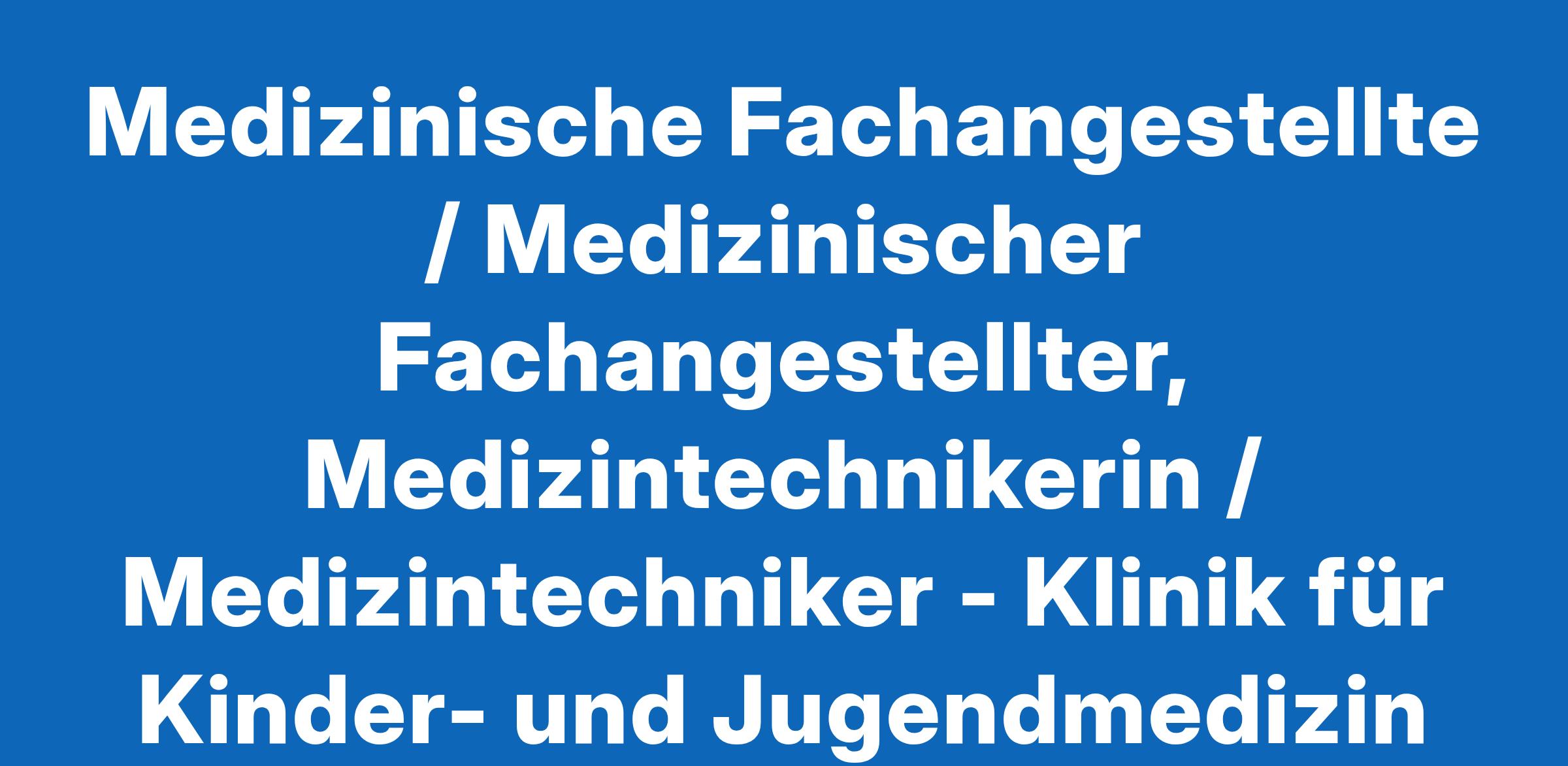 Medizinische Fachangestellte / Medizinischer Fachangestellter, Medizintechnikerin / Medizintechniker - Klinik für Kinder- und Jugendmedizin