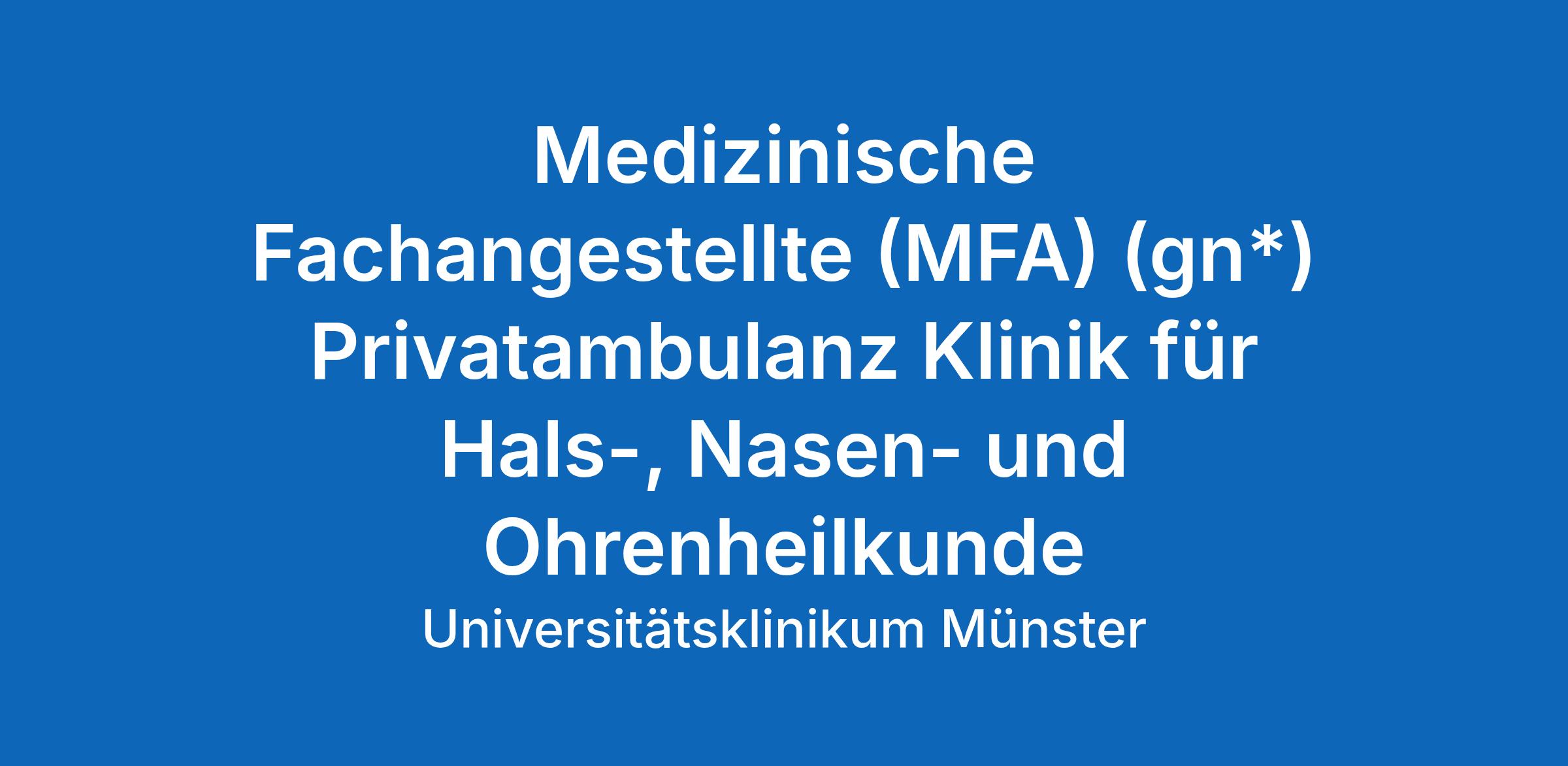Medizinische Fachangestellte (MFA) (gn*) Privatambulanz Klinik für Hals-, Nasen- und Ohrenheilkunde