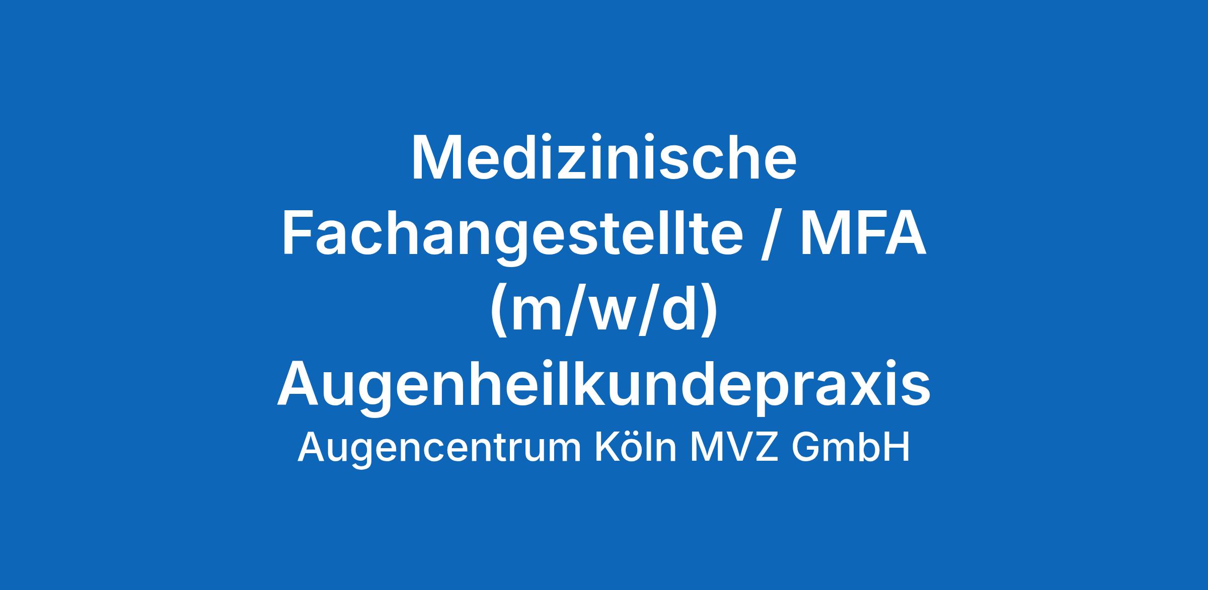Zum nächstmöglichsten Zeitpunkt suchen wir für unseren Praxis- und OP Bereich (mit Fokus Makula Therapie) in Köln-Porz eine/n Medizinische Fachangestellte/n für unser Team in Vollzeit.
