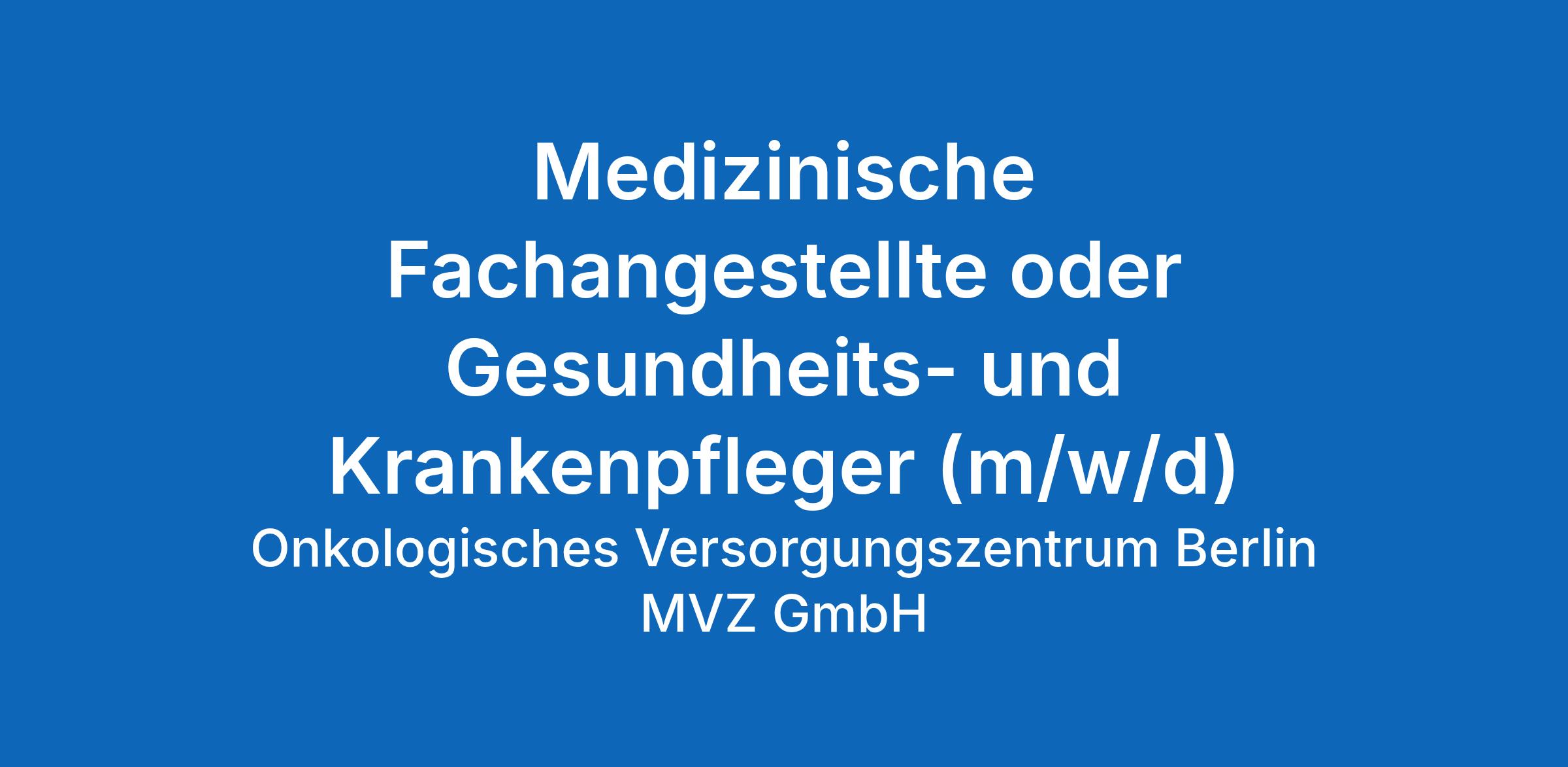 Medizinische Fachangestellte oder Gesundheits- und Krankenpfleger (m/w/d)