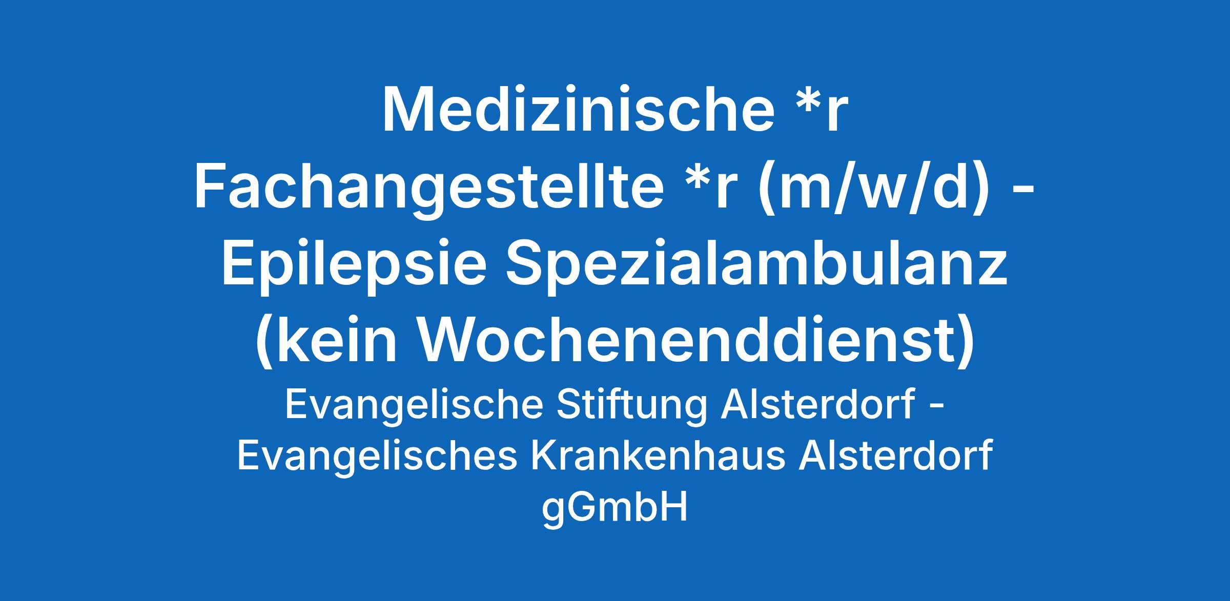 Medizinische *r Fachangestellte *r (m/w/d) – Epilepsie Spezialambulanz (kein Wochenenddienst)