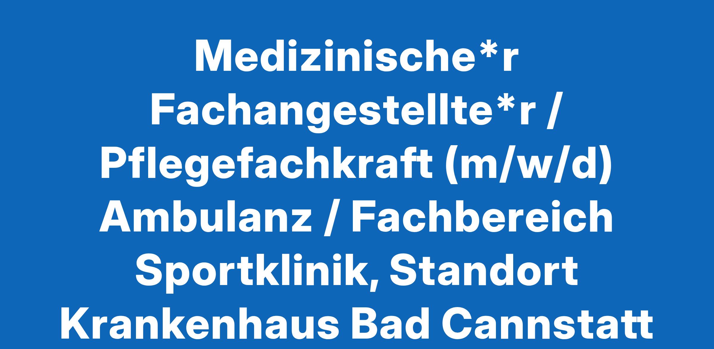 Medizinische*r Fachangestellte*r / Pflegefachkraft (m/w/d) Ambulanz / Fachbereich Sportklinik, Standort Krankenhaus Bad Cannstatt