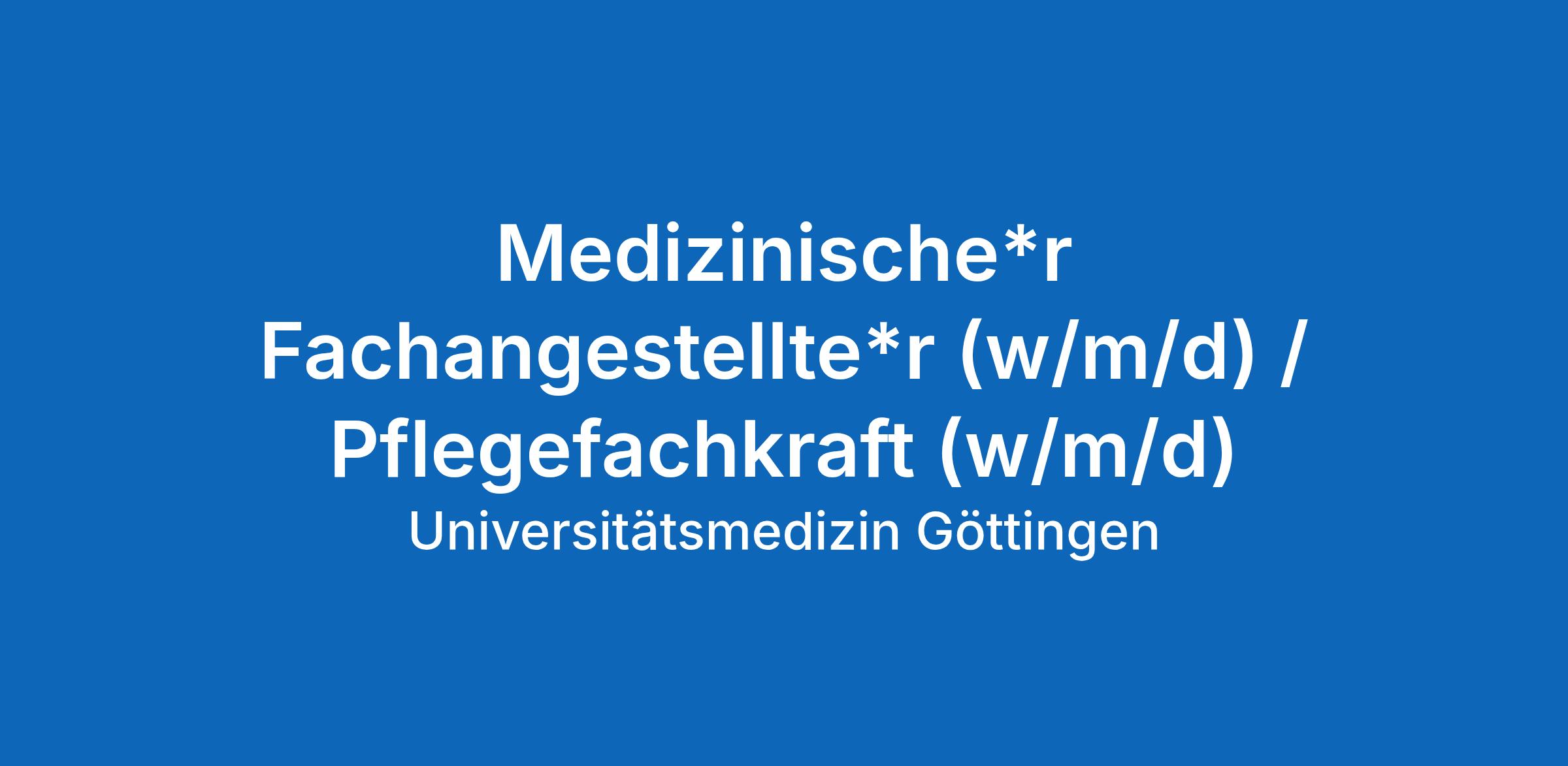 Unser Ziel als Universitätsmedizin Göttingen ist die berufliche Gleichstellung aller Geschlechter. Wir streben in Bereichen, in denen eine Unterrepräsentation vorliegt, eine Angleichung des Geschlechterverhältnisses an. Der beruflichen Teilhabe von schwerbehinderten Menschen sieht sich die Universitätsmedizin Göttingen in besonderer Weise verpflichtet und begrüßt deshalb Bewerbungen schwerbehinderter Menschen. Bei gleicher Eignung werden Bewerbungen schwerbehinderter Personen nach Maßgabe der einschlägigen Vorschriften bevorzugt berücksichtigt. Wir bitten Sie, eine Behinderung/Gleichstellung zur Wahrung Ihrer Interessen bereits im Bewerbungsschreiben anzugeben.