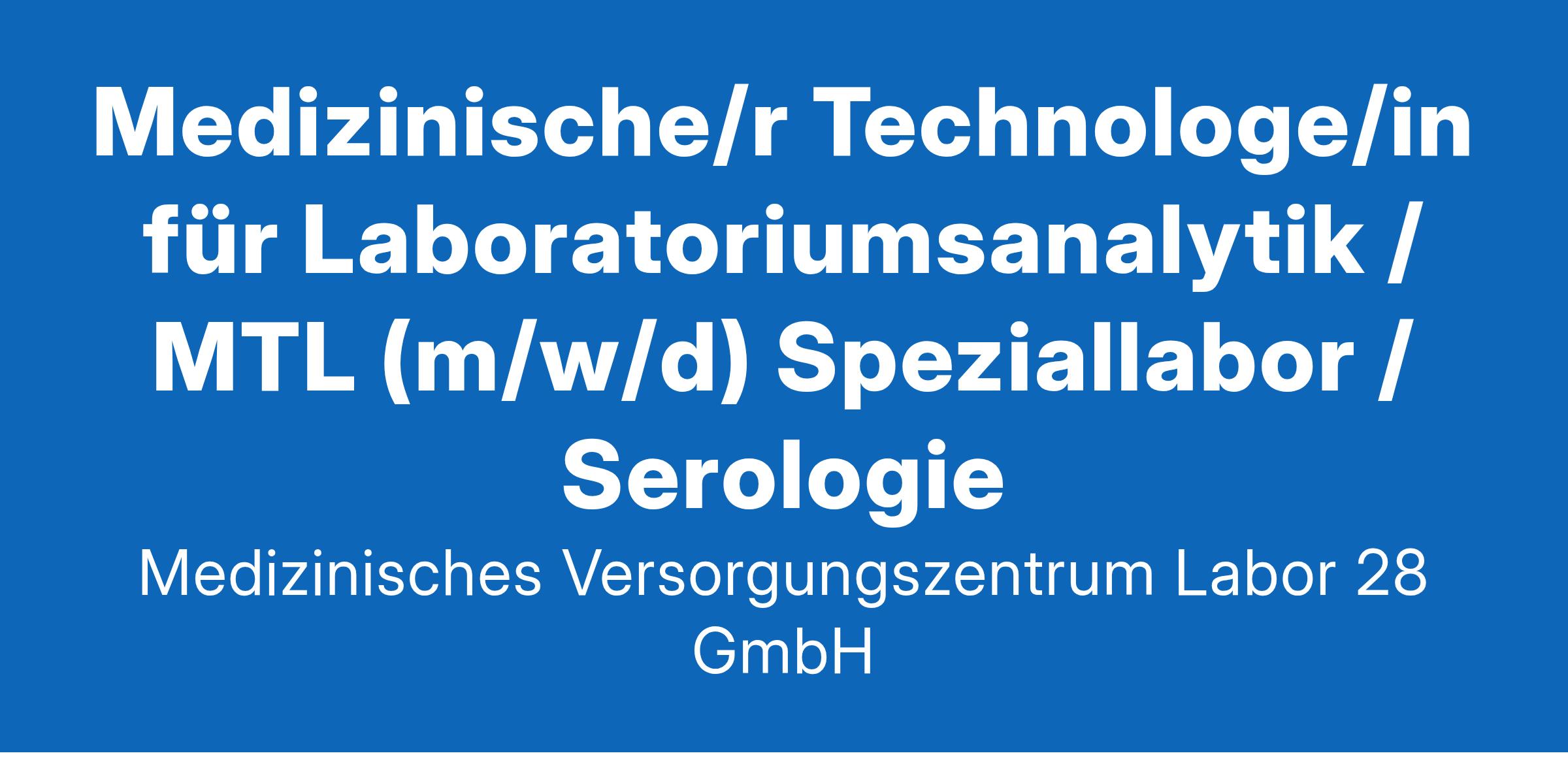 Medizinische/r Technologe/in für Laboratoriumsanalytik / MTL (m/w/d) Speziallabor / Serologie Herzlich willkommen im Labor 28! Seit mehr als 40 Jahren führen wir für Ärzte, Zahnärzte, Krankenhäuser, arbeitsmedizinische Einrichtungen und Institute qualitativ hochwertige Laboruntersuchungen in den Fachgebieten der Laboratoriumsmedizin, Mikrobiologie, Virologie, Infektionsserologie, Hygiene, Transfusionsmedizin sowie Molekulargenetik durch. Rund 340 Mitarbeiterinnen und Mitarbeiter aus über 20 verschiedenen Berufen arbeiten hier gemeinsam, um Patientinnen und Patienten im Großraum Berlin eine optimale medizinische Versorgung zu ermöglichen. Die damit einhergehende große Verantwortung tragen wir gerne. Unterstützen Sie uns dabei, diesem Anspruch gerecht zu werden! Verstärken Sie unser Team als MTL (m/w/d) Speziallabor/Serologie Ihr Verantwortungsbereich: Untersuchung verschiedener Probenmaterialien (Seren, Plasma, Liquor, Stuhl etc.) mit automatischen und manuellen Analyseverfahren im Bereich der Infektionsserologie und Immunologie Anwendung vielfältiger Methoden, u.a. RIA-Labor, Durchflusszytometrie, spezielle Elektrophoresen sowie Handarbeitsplätze Bearbeitung von Notfall- und Eiligproben Organisation Ihres Arbeitsplatzes sowie Validierung neuer und alter Verfahren Pflege und Terminierung von Wartungsarbeiten der Analysegeräte Bestellung von Reagenzien sowie dem Kontroll- und Verbrauchsmaterial für Ihren Aufgabenbereich Unsere Benefits: sicherer Arbeitsplatz mit unbefristetem Vertrag in einem der modernsten Labore Deutschlands intensive Einarbeitung und Kolleginnen und Kollegen, die Ihnen mit Rat und Tat zur Seite stehen Feedbackkultur und wertschätzenden Umgang strukturierte Fort- und Weiterbildungen 29 Tage Urlaub, Weihnachten und Silvester sind zusätzlich frei Urlaubsgeld und vermögenswirksame Leistungen Betriebliche Altersvorsorge Wöchentlicher finanzieller Essenszuschuss und Zuschuss zum BVG-Firmenticket JobRad und Fitness-Zuschuss (EGYM Wellpass) Mitarbeiterevents (z.B. Sommerfest und Nikolausfrühstück) Mitarbeiterempfehlungsprogramm Mitarbeiterrabatte beim Shopping Employee Assistance Programme - persönlicher 24/7 Beratungsdienst für alle Mitarbeitenden Ihr Profil: Erfolgreich abgeschlossene Ausbildung als Medizinische/r Technologe/in für Laboratoriumanalytik (m/w/d) Ein Plus, aber kein Muss: Erfahrungen im Bereich Infektionsserologie und Immunologie, wenn Sie gewissenhaft arbeiten und Verantwortung übernehmen wenn Sie Bereitschaft zu Früh- und Spätdiensten haben (keine Nachtdienste) wenn Sie eine schnelle Auffassungsgabe, Einsatzfreude und Teamfähigkeit besitzen Stimmt die Chemie? Dann fehlt nur noch eines: Ihre Bewerbung! Senden Sie uns bitte Ihre vollständigen Bewerbungsunterlagen (Anschreiben, Lebenslauf und (Arbeits-)Zeugnisse) und geben dabei auch Ihren frühestmöglichen Eintrittstermin und Ihre Gehaltsvorstellung an. Wir freuen uns auf Sie! MVZ Labor 28 GmbH Personalwesen Mecklenburgische Str. 28 14197 Berlin