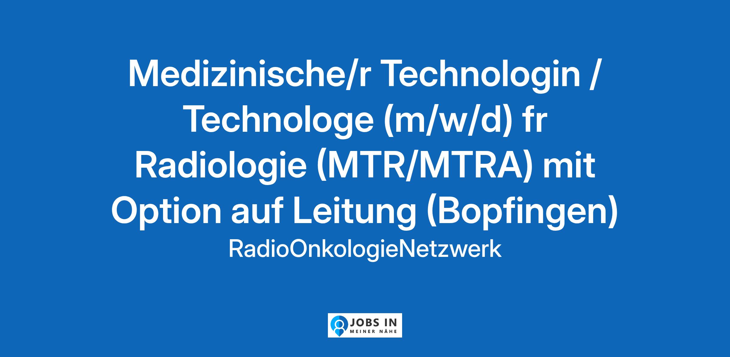 Zur Verstrkung unseres Teams der Strahlentherapie MRT & NUK in Schwbisch Gmnd suchen wir ab sofort oder zum nchstmglichen Zeitpunkt eine/n Medizinische/n Technologin / Technologe (m/w/d) fr Radiologie (MTR/MTRA) mit Option auf Leitung .