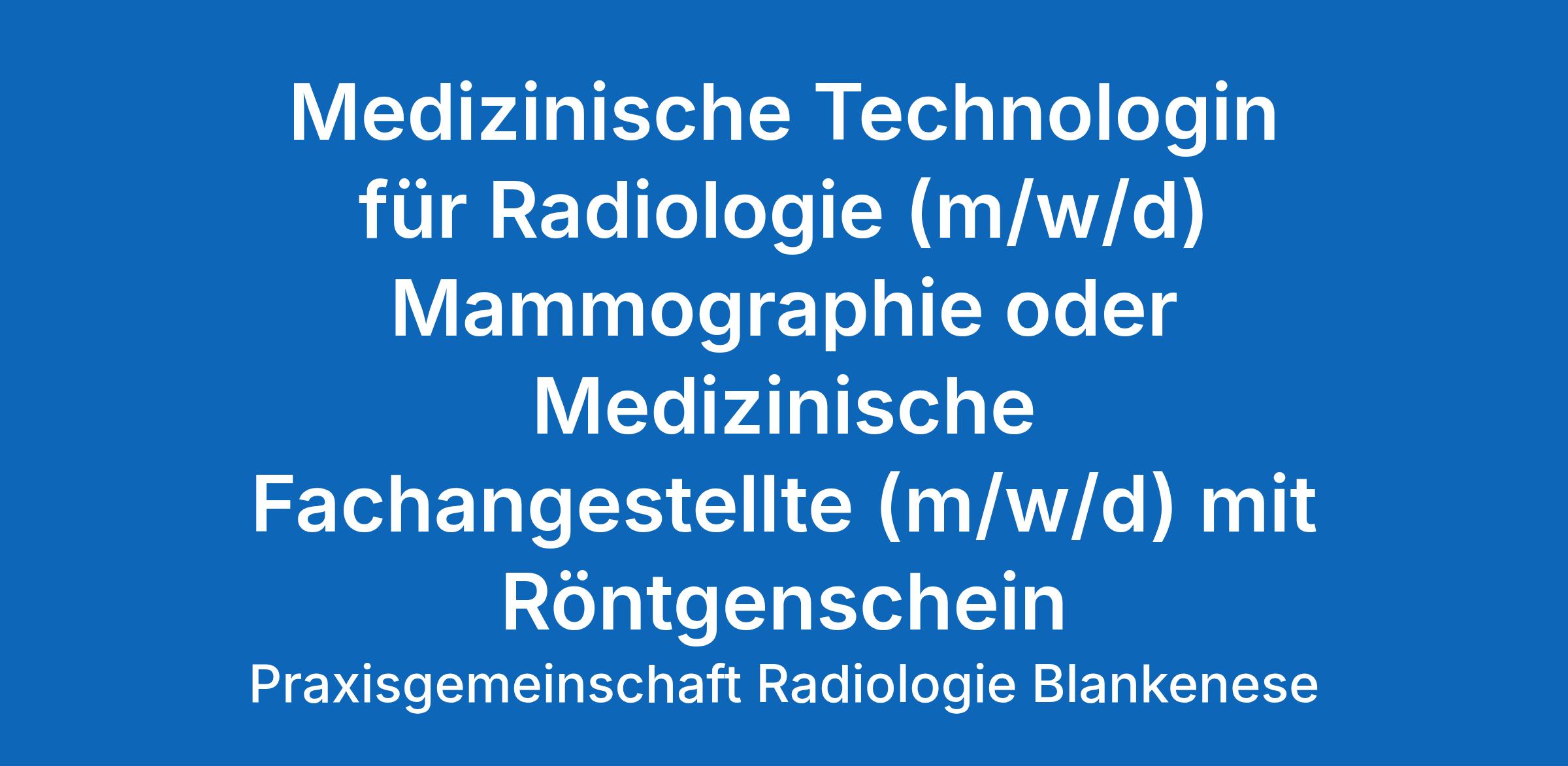 Medizinische Technologin für Radiologie (m/w/d) Mammographie oder Medizinische Fachangestellte (m/w/d) mit Röntgenschein