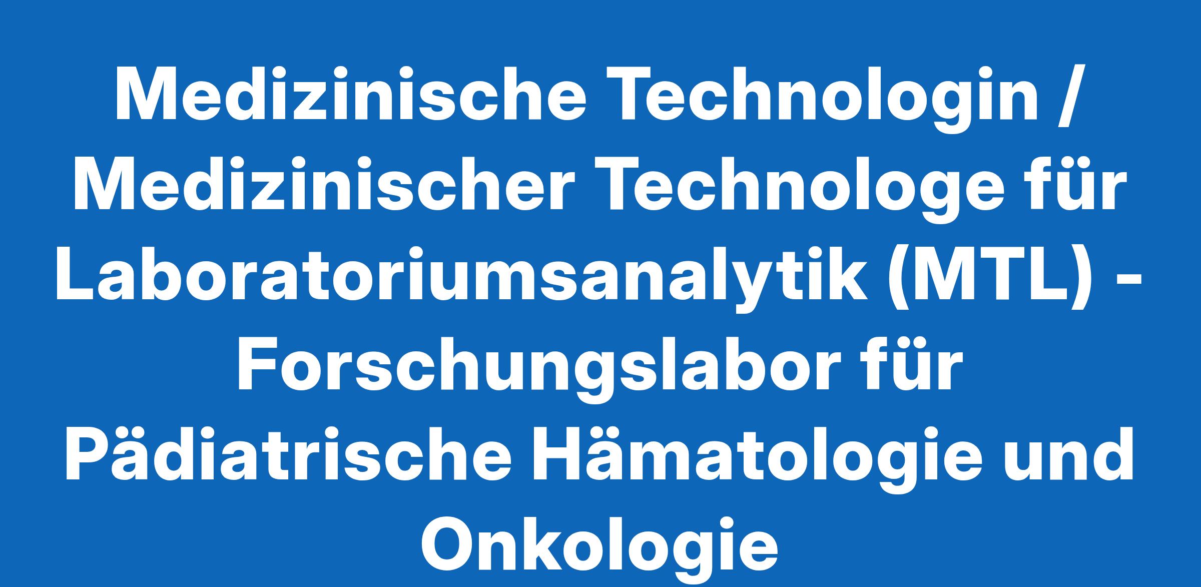 „Aus Wissen wird Gesundheit“ - wir füllen dieses Motto tagtäglich mit Leben, entwickeln neue Ideen und Altbewährtes weiter. Das Universitätsklinikum Frankfurt besteht seit 1914 und unsere rund 8.500 Beschäftigten bringen sich mit ihrem Können und Wissen an den 33 Fachkliniken, klinisch theoretischen Instituten und in den Verwaltungsbereichen ein. Die enge Verbindung von Krankenversorgung mit Forschung und Lehre sowie ein Klima der Kollegialität, Internationalität und berufsgruppenübergreifender Zusammenarbeit zeichnen das Universitätsklinikum aus.Medizinische Technologin / Medizinischer Technologe für Laboratoriumsanalytik (MTL) - Forschungslabor für Pädiatrische Hämatologie und Onkologie(wir richten uns mit dieser Ausschreibung an Bewerbende jeden Geschlechts)Vollzeit | befristet für 2 Jahre | Ausschreibungsnummer: 101-2025Die Position ist in dem Forschungslabor für Pädiatrische Hämatologie und Onkologie der Universitätsmedizin Frankfurt zum nächstmöglichen Zeitpunkt zu besetzen. Das Labor ist Teil der Klinik für Kinder- und Jugendmedizin, der größten Kinderklinik im Rhein-Main Gebiet. Die Stelle ist angesiedelt in der Leukemia Research Group ( www.leukemia-research.de ) unter der Leitung von Prof. Dr. J.-H. Klusmann und Prof. Dr. D. Heckl. Der Fokus der Gruppe liegt auf der Krebsgenomik sowie auf translationalen Studien zur Krebsentstehung bei Kindern, mit besonderem Schwerpunkt auf der akuten myeloischen Leukämie im Kindesalter.Für einen Einblick in das Universitätsklinikum Frankfurt geht es hier entlang.Ihre AufgabenSie arbeiten an molekularbiologischen Forschungsprojekten zur Leukämieentstehung im Kindesalter mit.