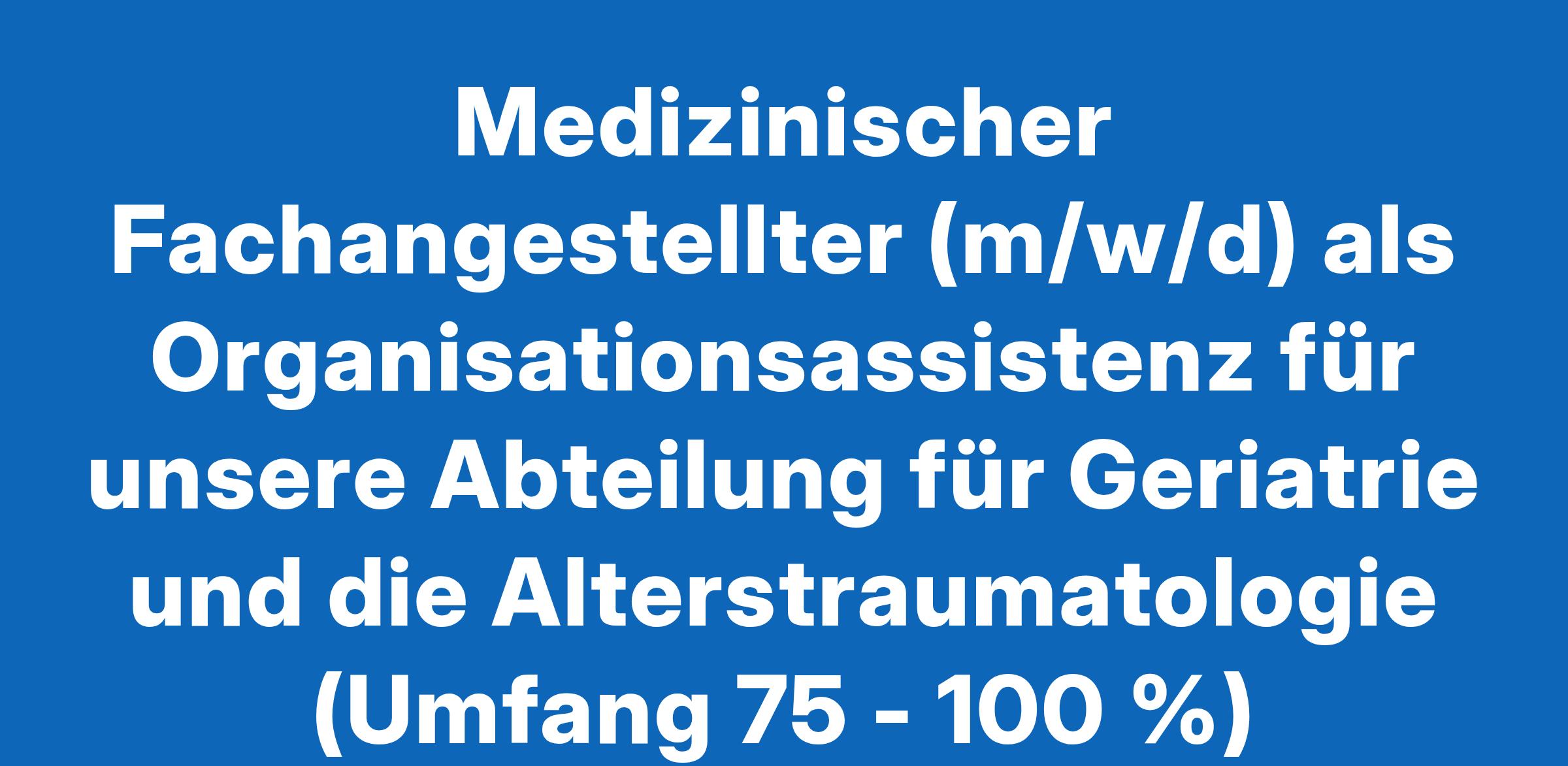 Medizinischer Fachangestellter (m/w/d) als Organisationsassistenz für unsere Abteilung für Geriatrie und die Alterstraumatologie (Umfang 75 - 100 %)