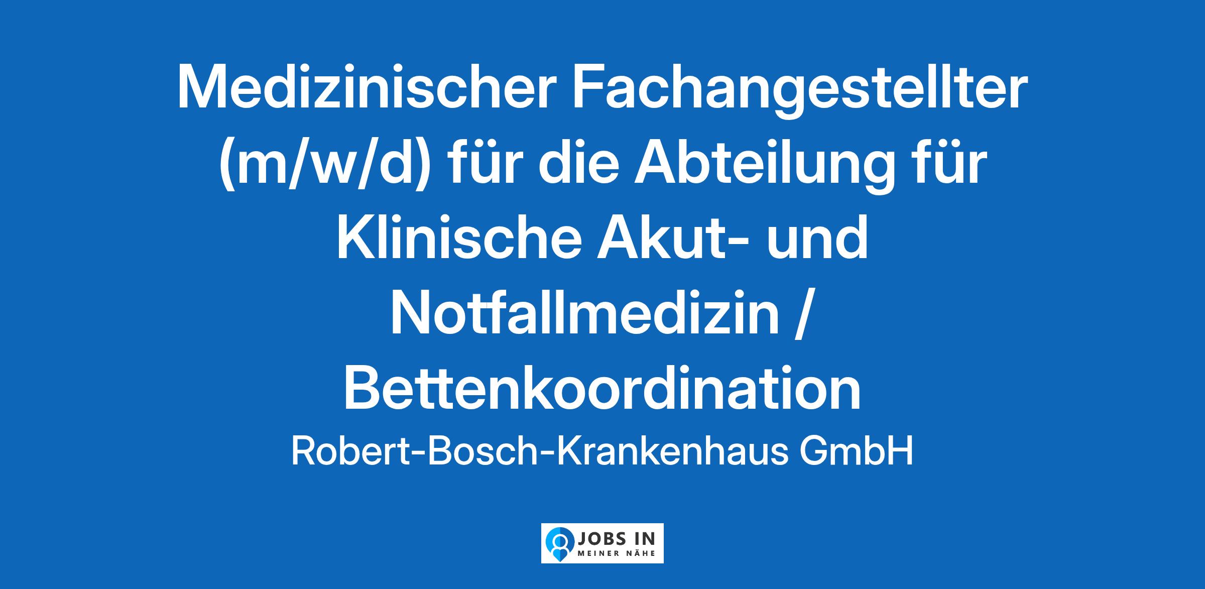 Das Robert Bosch Krankenhaus ist ein von der Robert Bosch Stiftung getragenes Krankenhaus der Zentralversorgung mit Funktionen der Maximalversorgung an drei Standorten. Mit 1.041 Betten nehmen das RBK, seine Standorte Klinik Charlottenhaus und RBK Lungenzentrum Stuttgart (Klinik Schillerhöhe) sowie die Klinik für Geriatrische Rehabilitation im Jahr bis zu 40.000 Patienten stationär auf. Zum Krankenhausbetrieb mit über 3.000 Mitarbeitenden gehören 17 Fachabteilungen in verschiedenen medizinischen Zentren, ein Bildungszentrum und Forschungsinstitute. Für Mitarbeitende bieten sich in dieser Struktur vielfältige Entwicklungsmöglichkeiten.