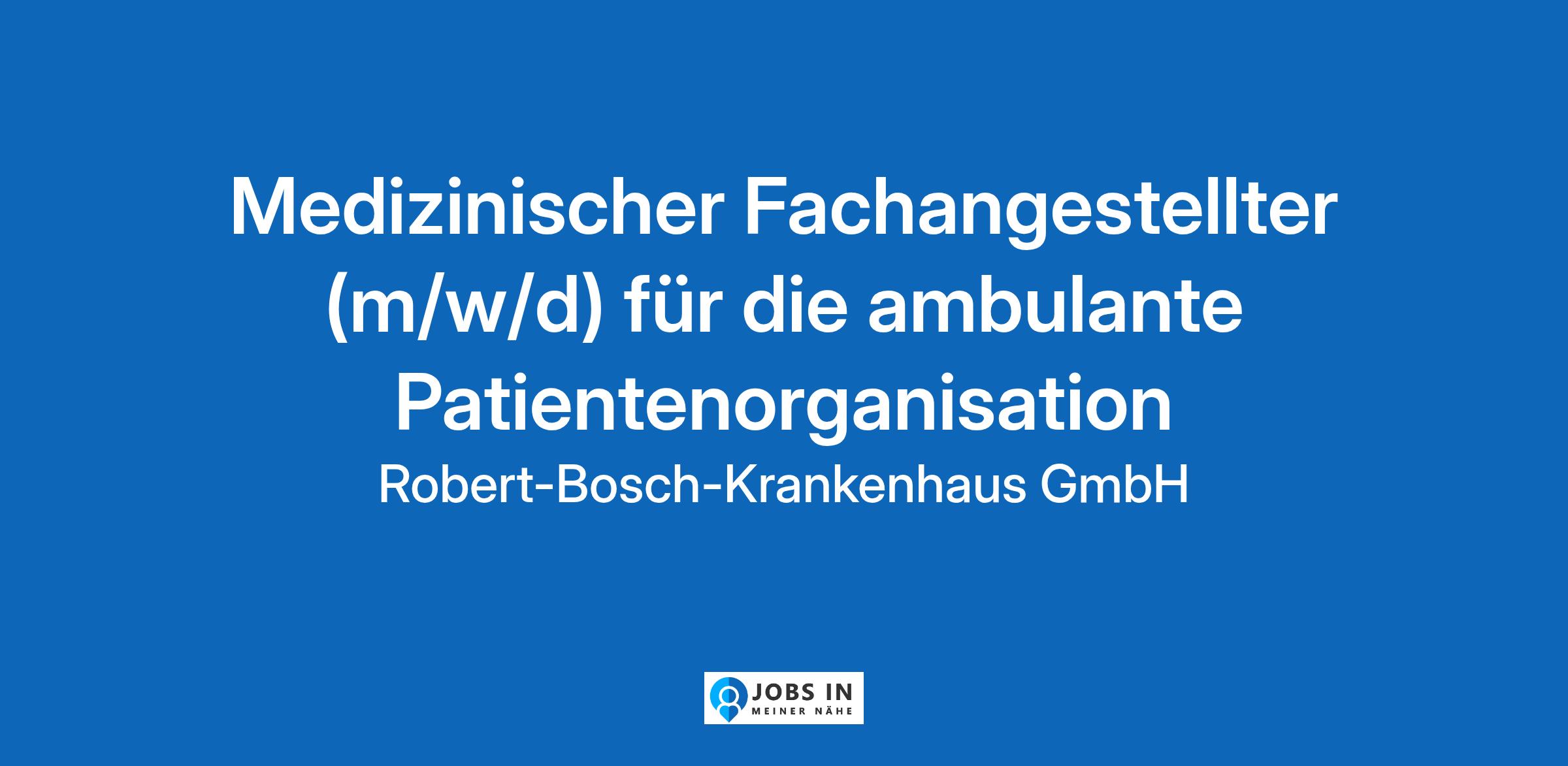 Das Robert Bosch Krankenhaus (RBK) ist eine Einrichtung des Bosch Health Campus der Robert Bosch Stiftung mit mehreren Standorten in Stuttgart. Als Krankenhaus der Zentralversorgung mit Funktionen der Maximalversorgung und 1.191 Betten nimmt das RBK mit dem RBK Lungenzentrum Stuttgart, dem Robert Bosch Krankenhaus Standort City sowie der Klinik für Geriatrische Rehabilitation im Jahr bis zu 40.000 Patient:innen stationär auf. Zum Krankenhausbetrieb mit über 3.000 Mitarbeitenden gehören 20 Fachabteilungen, über 15 Medizinische Zentren, ein Bildungszentrum sowie eine Beteiligung an einem weiteren Aus- und Weiterbildungszentrum. Der Bosch Health Campus umfasst neben dem RBK alle Forschungsinstitute und Förderaktivitäten der Robert Bosch Stiftung im Bereich Gesundheit. Für Mitarbeitende bieten sich in dieser Struktur vielfältige Entwicklungsmöglichkeiten.