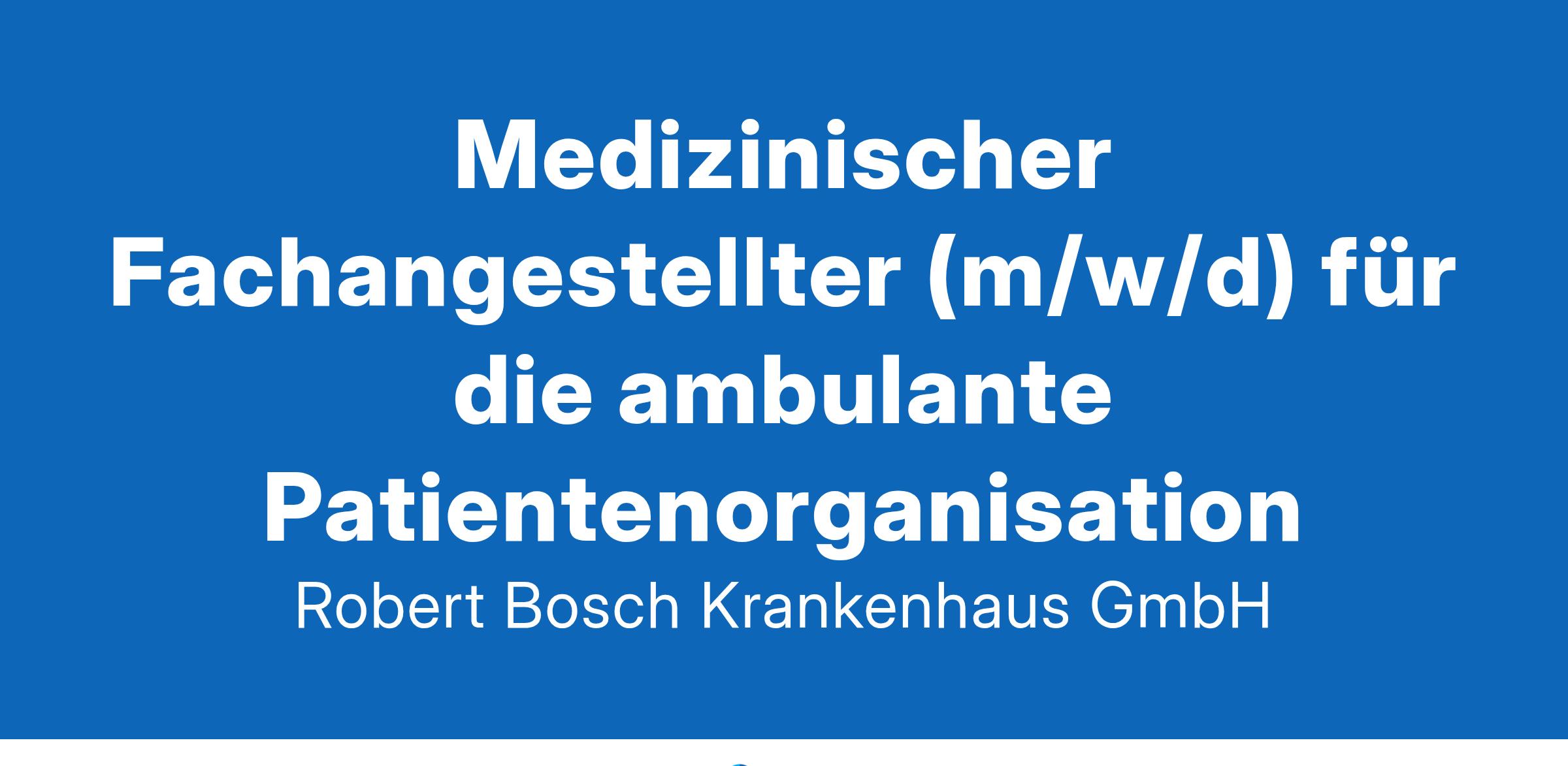 Das Robert Bosch Krankenhaus (RBK) ist eine Einrichtung des Bosch Health Campus der Robert Bosch Stiftung mit mehreren Standorten in Stuttgart. Als Krankenhaus der Zentralversorgung mit Funktionen der Maximalversorgung und 1.191 Betten nimmt das RBK mit dem RBK Lungenzentrum Stuttgart, dem Robert Bosch Krankenhaus Standort City sowie der Klinik für Geriatrische Rehabilitation im Jahr bis zu 40.000 Patient:innen stationär auf. Zum Krankenhausbetrieb mit über 3.000 Mitarbeitenden gehören 20 Fachabteilungen, über 15 Medizinische Zentren, ein Bildungszentrum sowie eine Beteiligung an einem weiteren Aus- und Weiterbildungszentrum. Der Bosch Health Campus umfasst neben dem RBK alle Forschungsinstitute und Förderaktivitäten der Robert Bosch Stiftung im Bereich Gesundheit. Für Mitarbeitende bieten sich in dieser Struktur vielfältige Entwicklungsmöglichkeiten.
