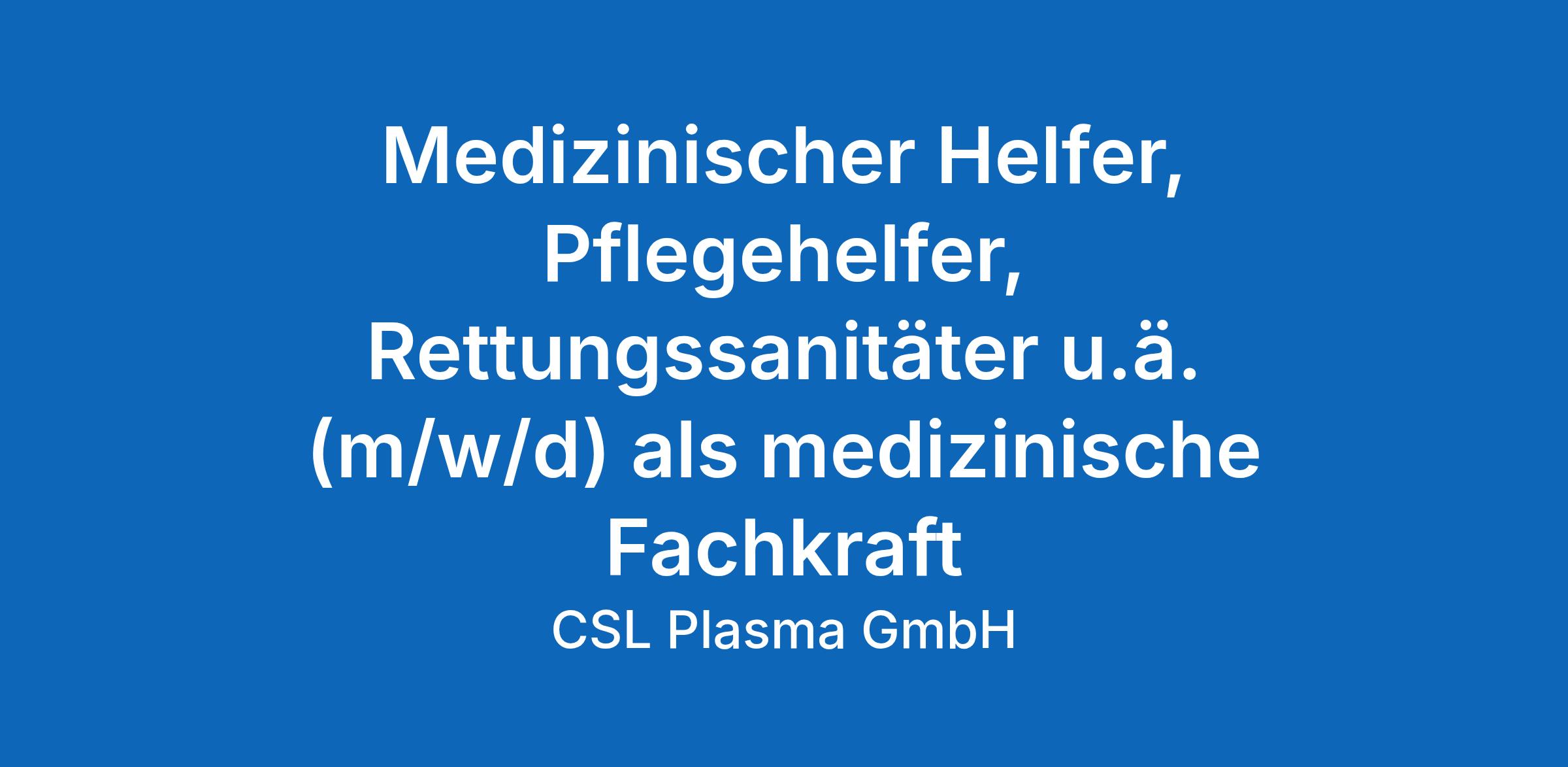 Medizinischer Helfer, Pflegehelfer, Rettungssanitäter u.ä. (m/w/d) als medizinische Fachkraft