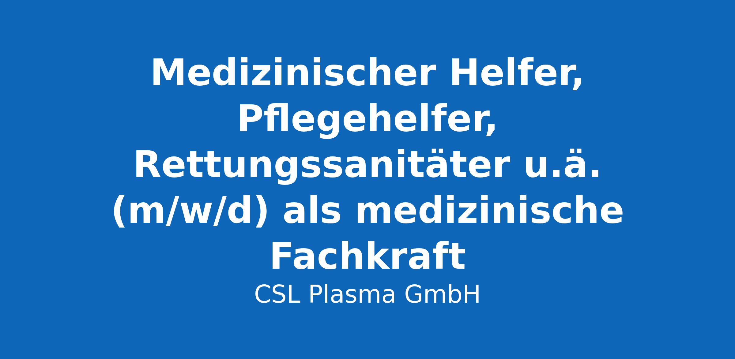 Medizinischer Helfer, Pflegehelfer, Rettungssanitäter u.ä. (m/w/d) als medizinische Fachkraft
