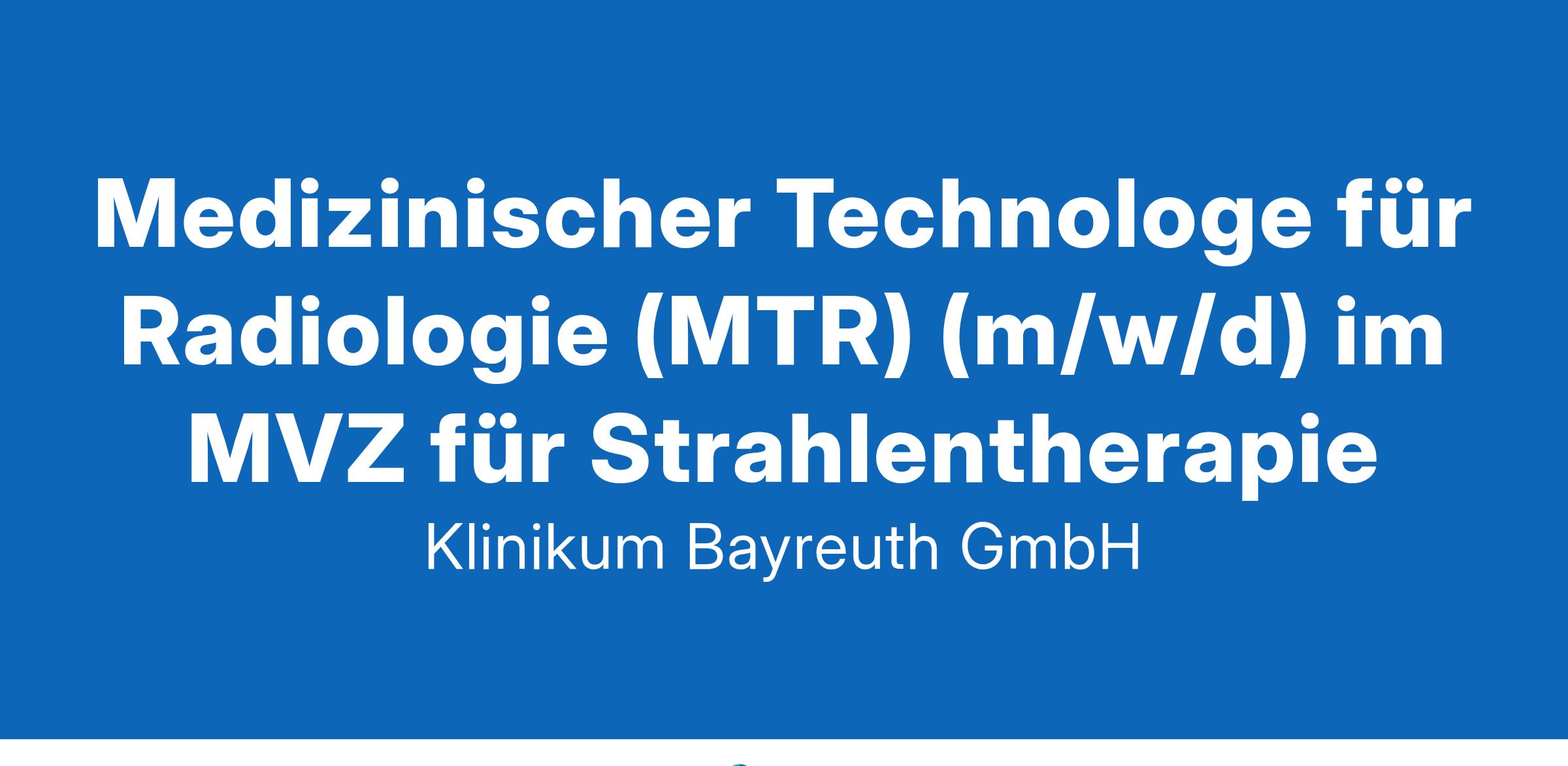 Die MedZentrum Klinikum Bayreuth GmbH mit insgesamt sechs Standorten in Bayreuth und der Umgebung ist für die ambulante fachmedizinische Versorgung zuständig. Durch die enge, fach- und institutsübergreifende Zusammenarbeit und unsere Anbindung an das Klinikum Bayreuth und die Klinik Hohe Warte, bieten unsere Medizinischen Versorgungszentren eine optimal verzahnte Versorgung für insgesamt 13 verschiedene Fachrichtungen. Patientinnen und Patienten profitieren davon, denn auf kurzem Weg können sich die ärztlichen Kolleginnen und Kollegen abstimmen. www.ambulanteszentrum-bayreuth.deIhr ArbeitsbereichIn unseren medizinischen Versorgungszentren versorgen wir Patientinnen und Patienten in unterschiedlicher Fachdisziplinen, die ambulant behandelt werden. Wir sind ein hochmotiviertes und professionelles Team, z. B. auf dem Gebiet der Gynäkologie, Dermatologie, Orthopädie, Urologie, Neurochirurgie und vielen weiteren. Das Wohl und die Gesundheit unserer Patientinnen und Patienten liegt uns am Herzen.Das sind Ihre AufgabenSie führen Bestrahlungen am Linearbeschleuniger (IMRT, 3D-konformal, IGRT, Stereotaxie) durch und arbeiten mit modernsten Geräten wie einem Simulations-CT mit 3D-Lasersystem und einem modernen Oberflächensystem (SGRT).
