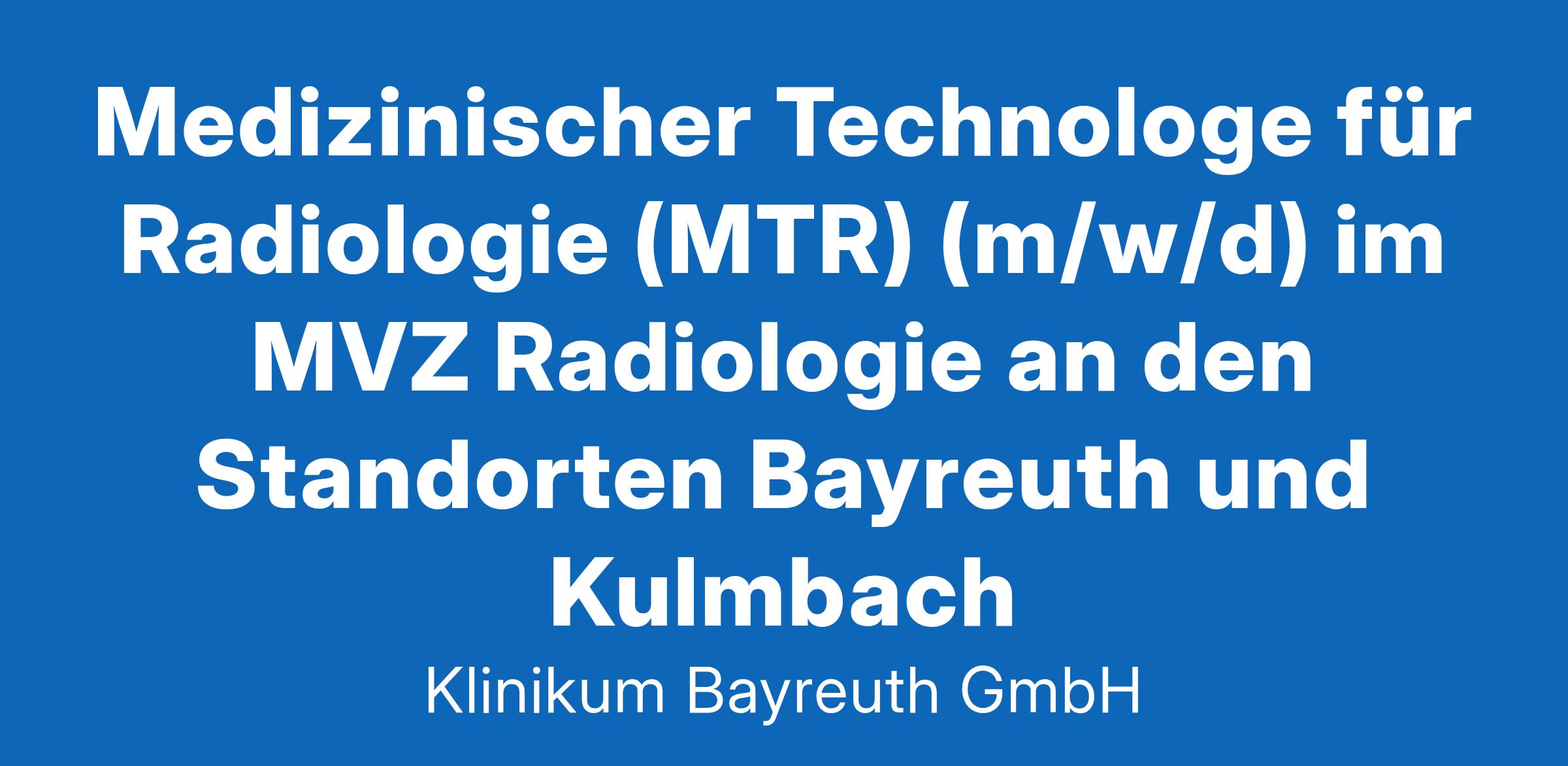 Medizinischer Technologe für Radiologie (MTR) (m/w/d) im MVZ Radiologie an den Standorten Bayreuth und Kulmbach