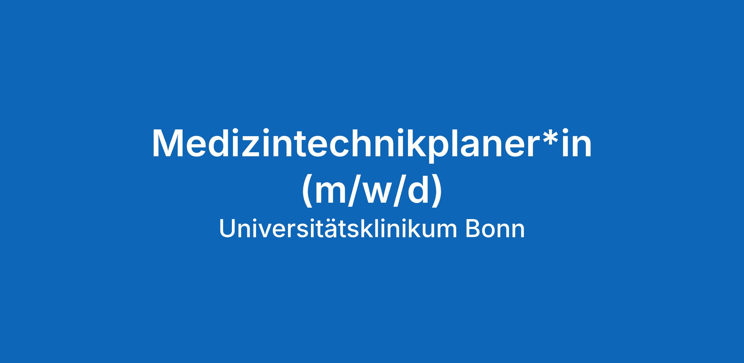 In der Abteilung Geräte- und Medizintechnik des Universitätsklinikums Bonn ist zum nächstmöglichen Zeitpunkt folgende Stelle in Vollzeit (38,5 Std./Woche) zu besetzen: