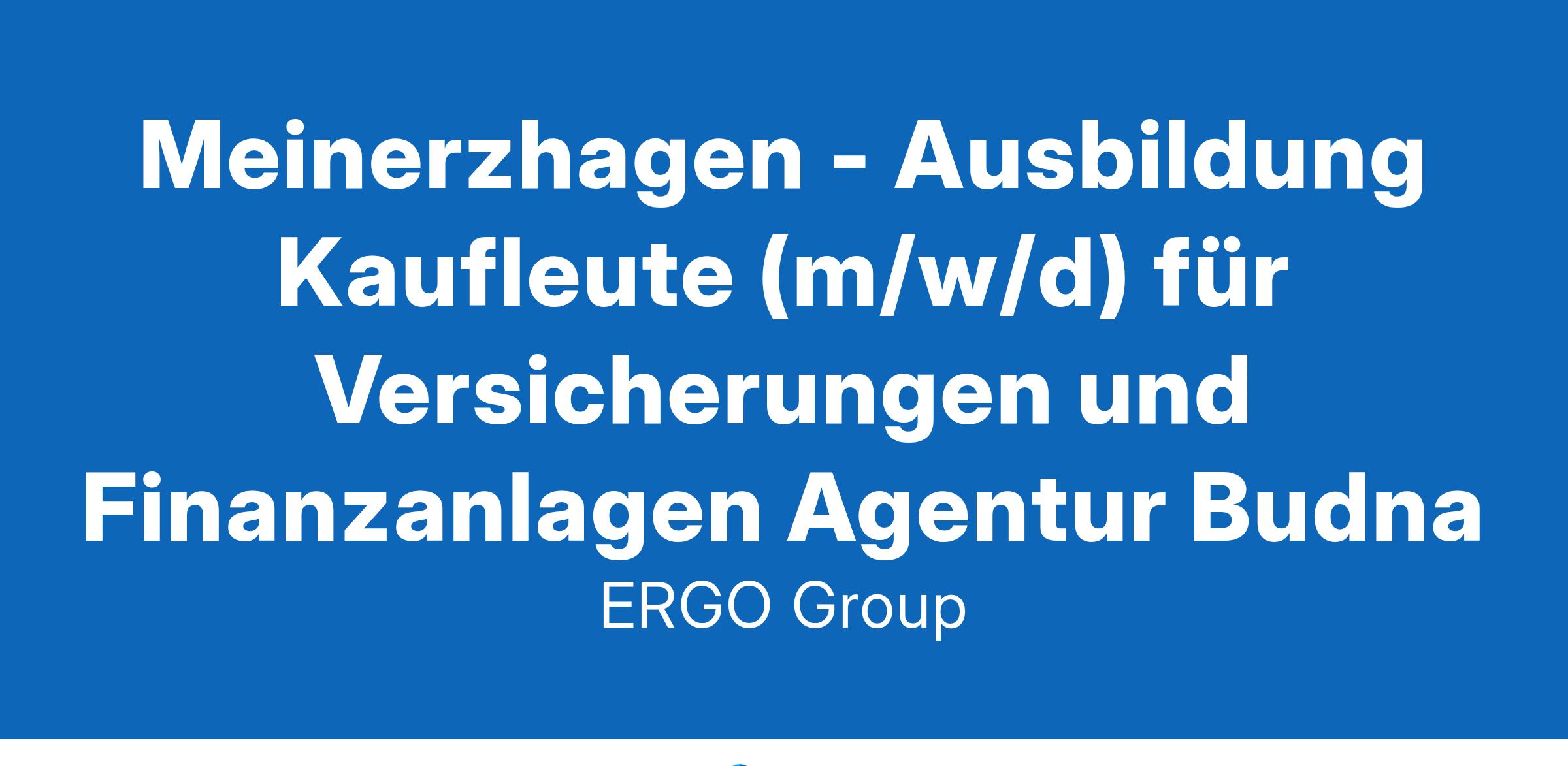 Meinerzhagen - Ausbildung Kaufleute (m/w/d) für Versicherungen und Finanzanlagen Agentur BudnaDu hast Spaß am Umgang mit Menschen? Du arbeitest gern eigenverantwortlich und gibst alles für Deine beruflichen Ziele? Bestens – wir suchen Dich! Komm zu ERGO und schaffe die Basis für eine aussichtsreiche Karriere.Menschen verstehen und gemeinsam Lösungen entwickeln