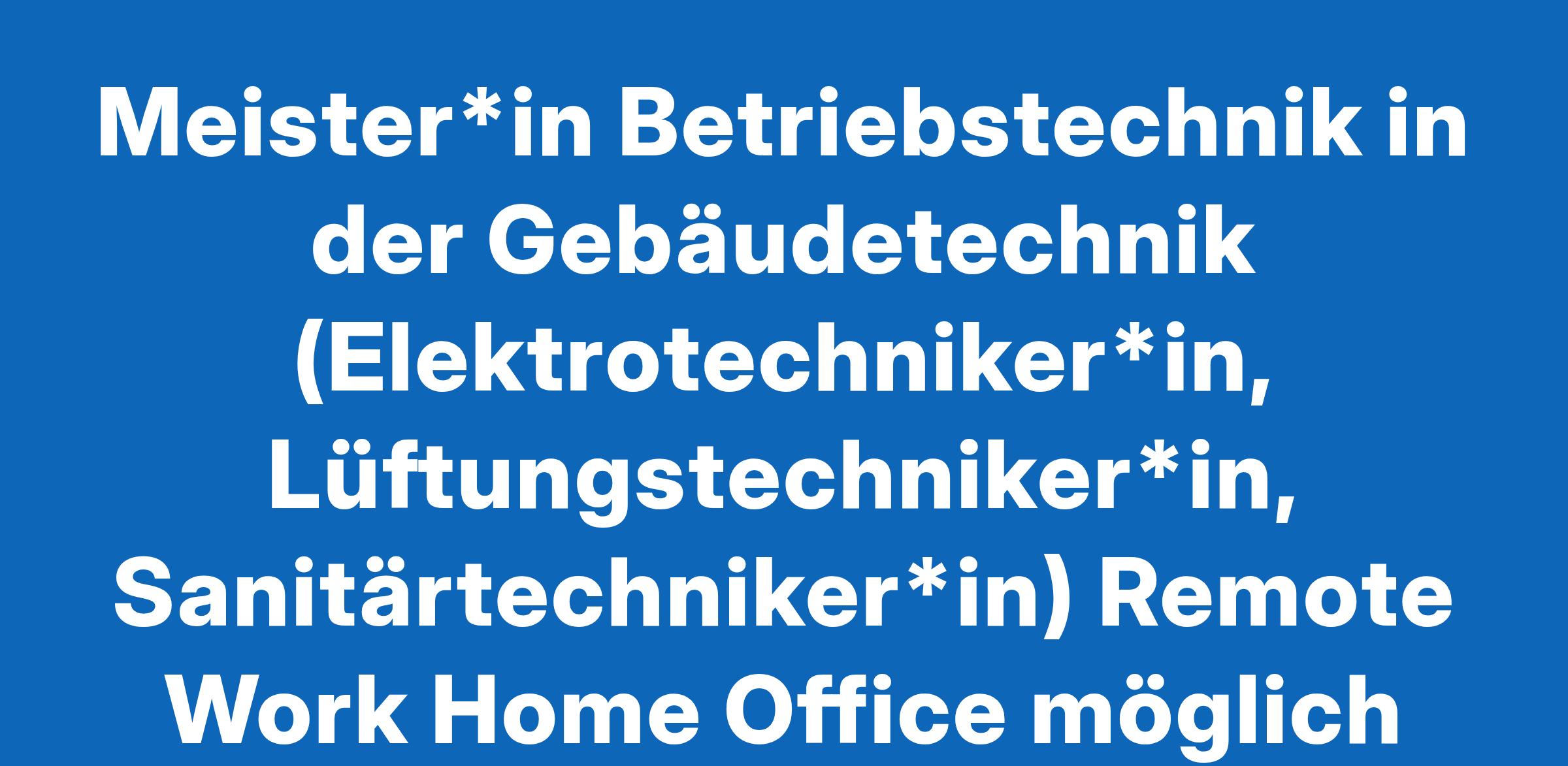 Meister*in Betriebstechnik in der Gebäudetechnik (Elektrotechniker*in, Lüftungstechniker*in, Sanitärtechniker*in) Remote Work Home Office möglich