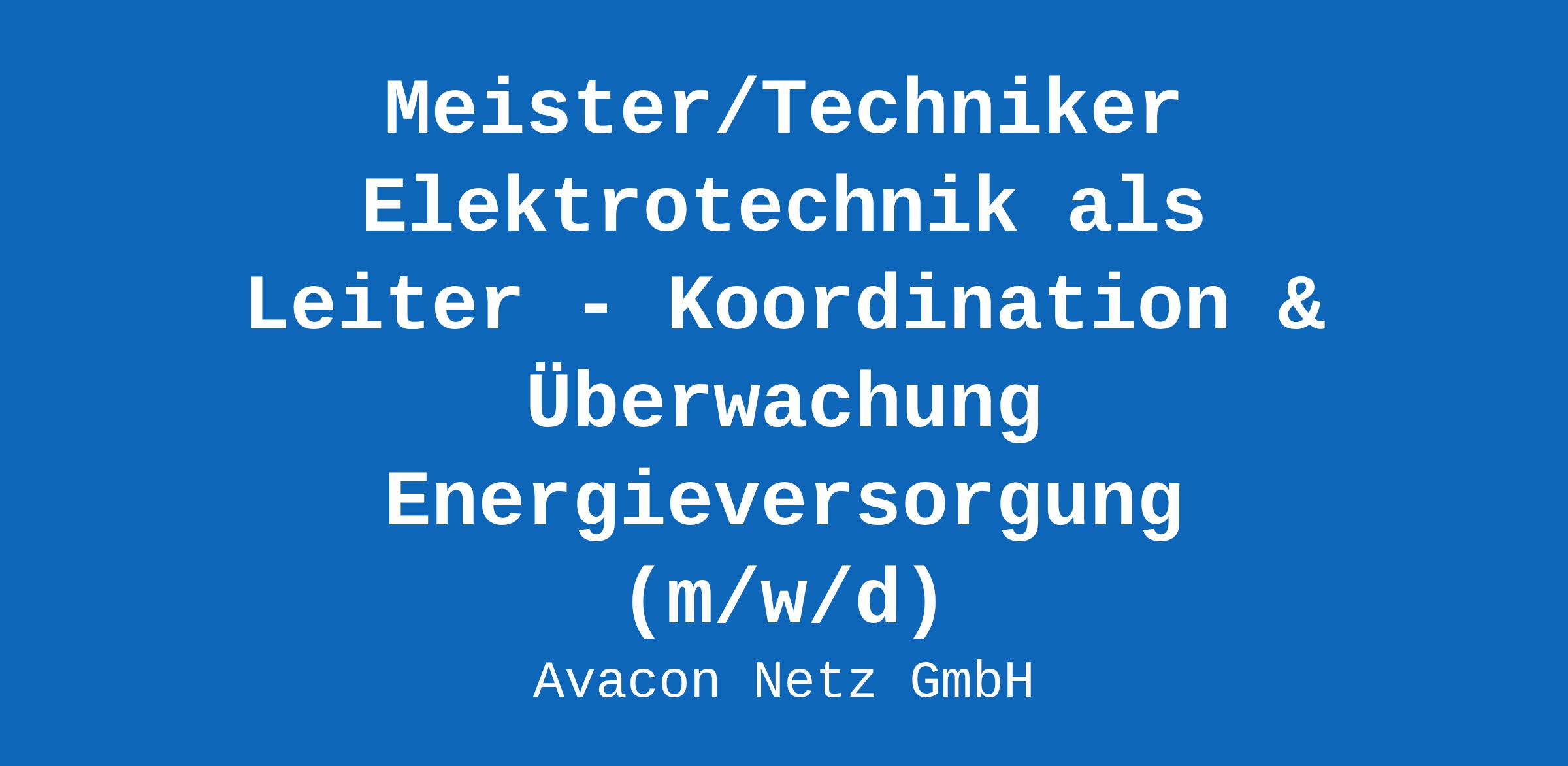 Meister/Techniker Elektrotechnik als Leiter - Koordination & Überwachung Energieversorgung (m/w/d)