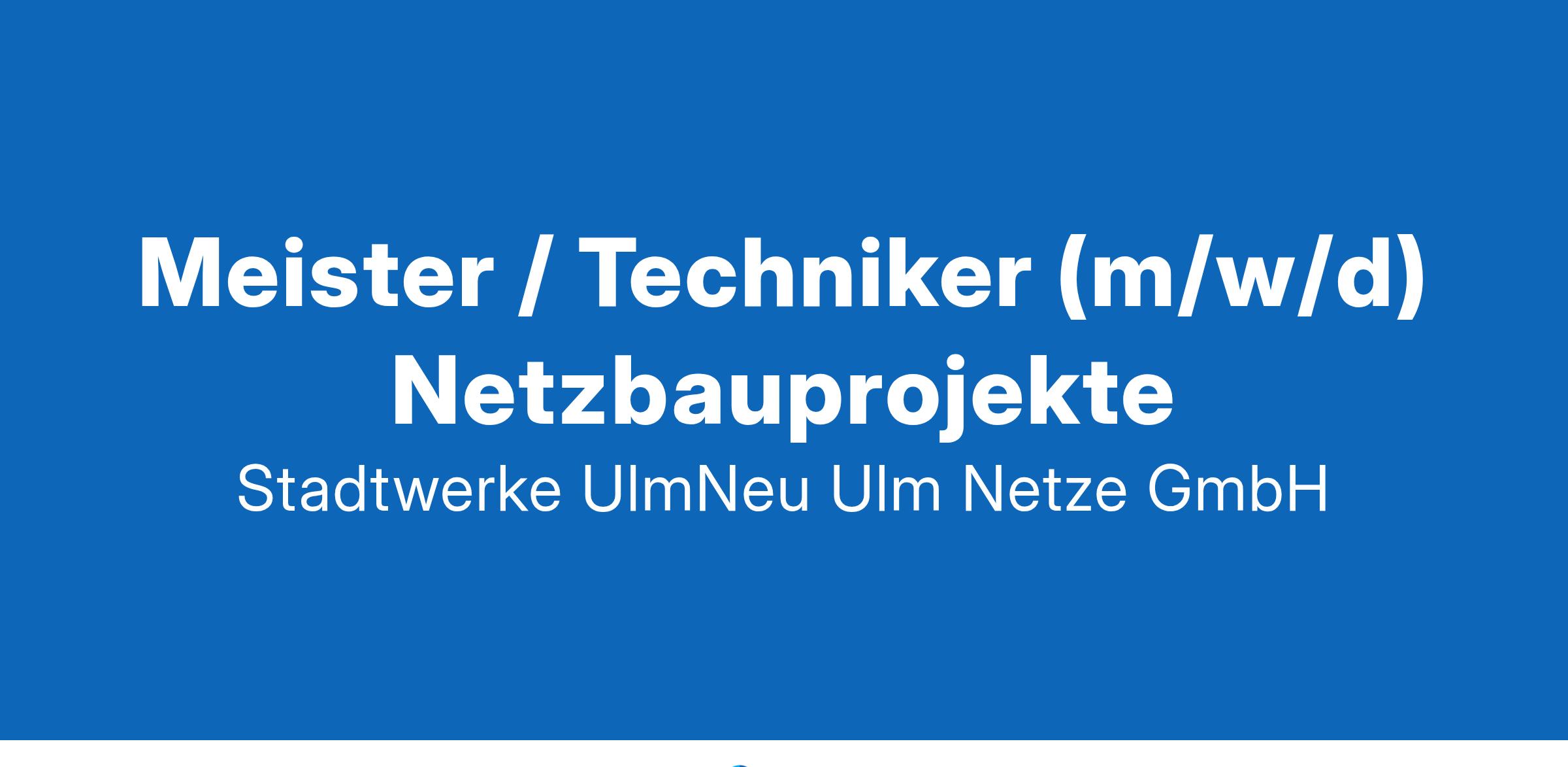 Die Stadtwerke Ulm/Neu-Ulm bringen frischen Wind in die Energiewende. Und noch viel mehr, denn wir treiben den Ausbau aller erneuerbaren Energien voran. Vielleicht bald mit dir – du wirst merken, das ist einer der #jobswieich. Meister/Techniker (m/w/d) Netzbauprojekte Stellen-ID: 2025-020, Bereich Infrastrukturmanagement Bewirb dich unter swu.de/jobs Ist das deine Mission? Abwicklung von Netzbauvorhaben/-projekten inkl. des Tiefbaus (im Gas-, Wasser-, Wärme-, Strom- und/oder Glasfasernetz) Maßnahmen- und Terminsteuerung, Festlegung von Bauabläufen sowie Einsatzplanung von Fremd- und Eigenleistungen bei verantwortlichen Netzbauvorhaben Überwachung des Netz- und Tiefbaus sowie Verantwortung für die gesamte Bauabwicklung Erfassung sowie Abrechnung der Fremd- und Eigenleistungen Abnahme sowie Nachbereitung der Netzbaumaßnahme Überwachung der Auftragskosten Auftragsverantwortung sowie Dokumentation der Auftragsabwicklung Was du mitbringst: Abgeschlossene Weiterbildung zum Netzmeister (m/w/d) oder zum Meister/Techniker (m/w/d), idealerweise in der Fachrichtung Straßenbau, Versorgungstechnik oder eine vergleichbare Qualifikation Mehrjährige Berufserfahrung, bestenfalls in der Abwicklung von Baumaßnahmen Bereitschaft zur Einarbeitung in ausbildungsfremde Sparten Sicherer Umgang mit Microsoft Office-Produkten Erfahrung mit einer Softwareanwendung zur Bauabrechnung Kenntnisse über die jeweils geltenden Regelwerke wie DVGW, VDE, AGFW, DIN etc. Sehr gute Teamfähigkeit und Zuverlässigkeit Hohes Maß an Eigenmotivation Führerschein Klasse B Warum die SWU? Kaum ein Unternehmen der Region hat die Kraft, im Leben aller rund um Energiewende, Mobilitätswende und Digitalisierung für morgen mehr zu bewegen. Das macht unsere Jobs extrem zukunftssicher. Und weil wir unser Team unterstützen, sind Sozialleistungen, wie eine betriebliche Altersvorsorge, persönliche Entwicklungsmöglichkeiten und Benefits selbstverständlich. Mehr auf unserer Website!