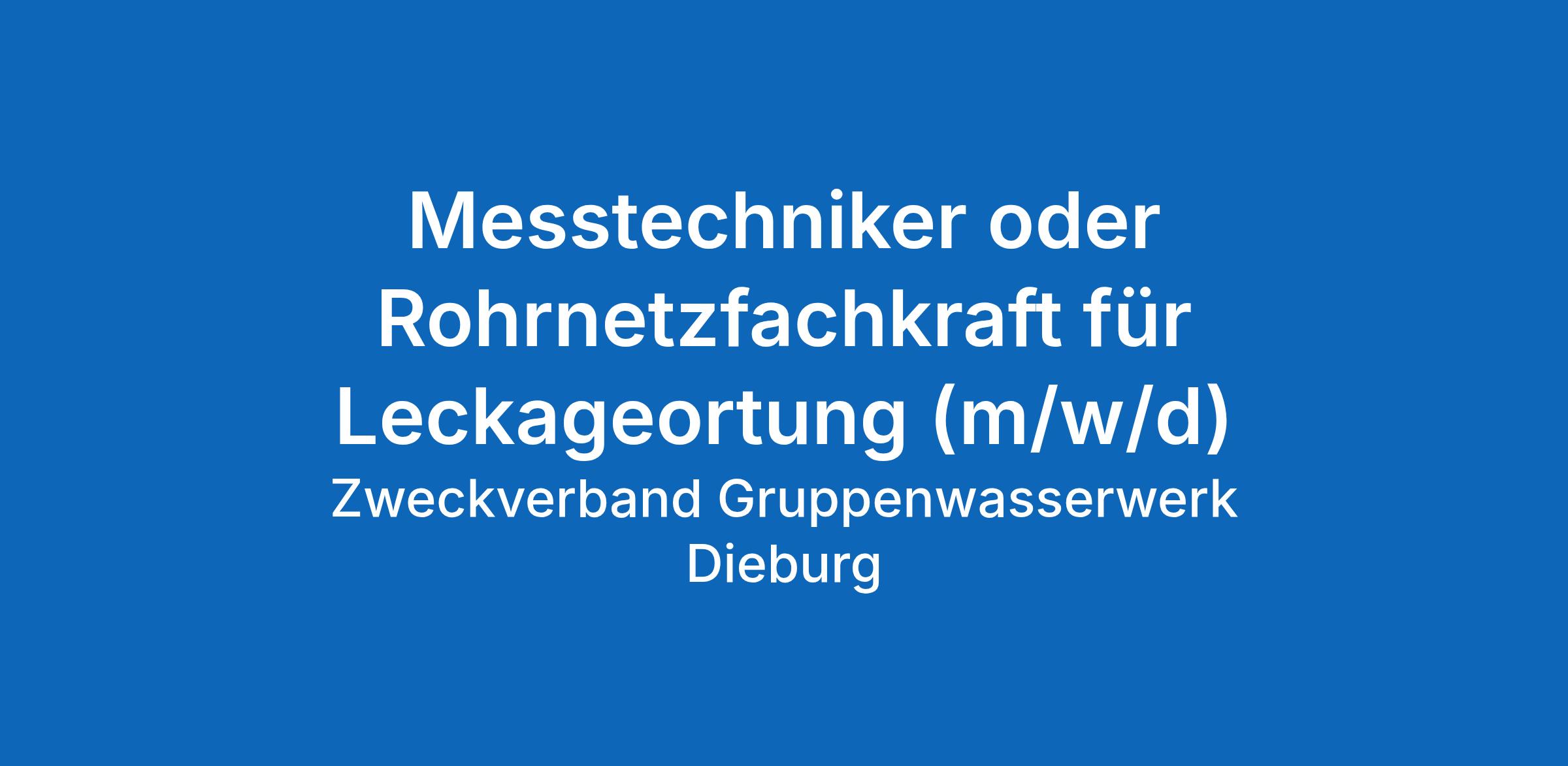 Messtechniker oder Rohrnetzfachkraft für Leckageortung (m/w/d)