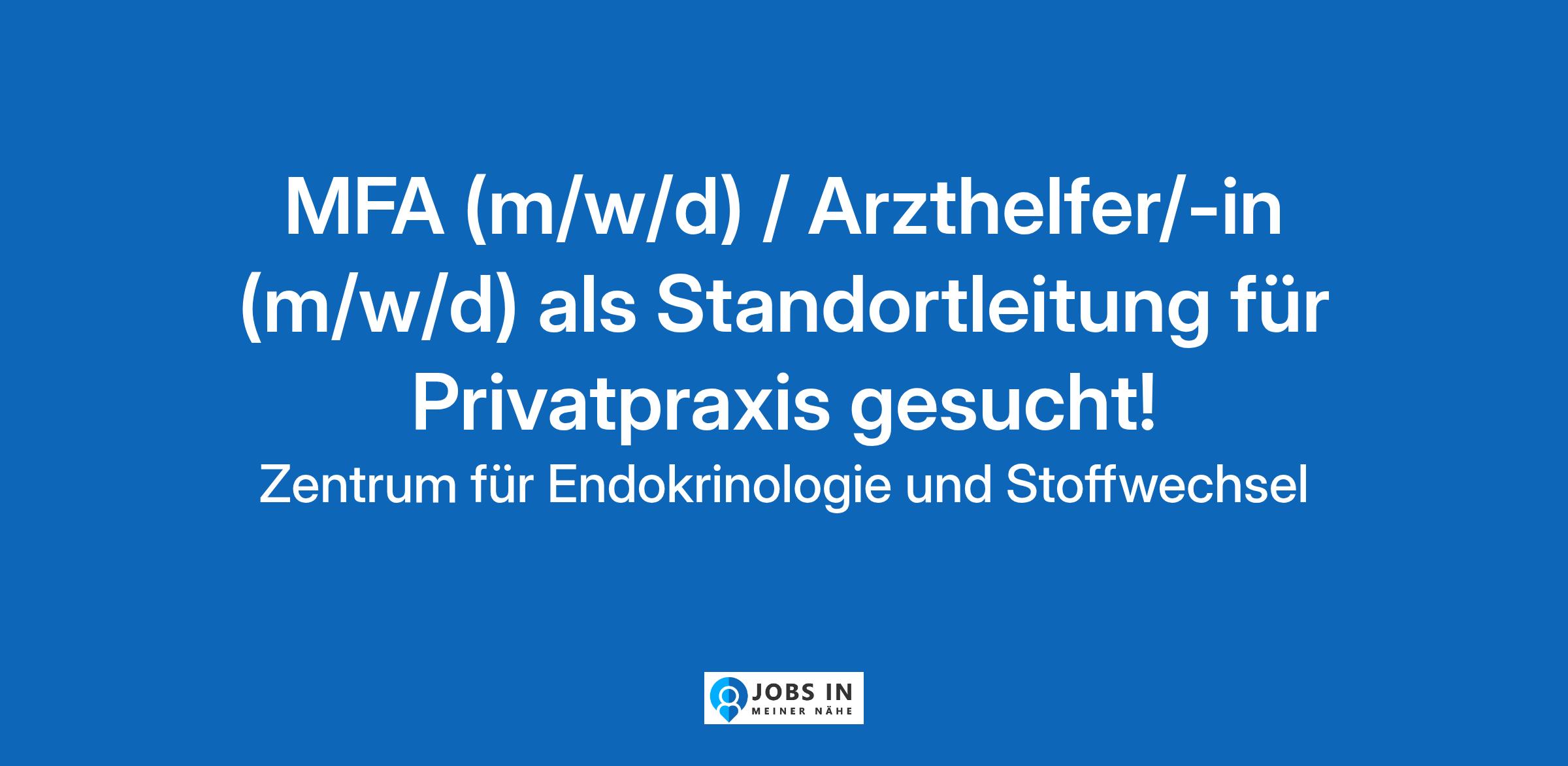 Wir sind das Zentrum für Endokrinologie und Stoffwechsel Bayern. Unser Fachbereich ist die Behandlung und Prävention von Hormon- und Stoffwechselerkrankungen. Für die Neueröffnung einer Privatpraxis in Augsburg suchen wir ab 01.11.2025 eine kompetente und engagierte MFA / Arzthelfer*in als Stando... Patientenannahme;Datenschutz;Messung;Führungspositionen;Standorte verwalten;Abrechnung;Terminvereinbarung;Selbstmotivation;Kompetent;Hygienemanagement;Kommunikation;Telefondienst;Arbeitsplätze;Überwachung;Labor Fähigkeiten;Blutentnahme;Engagement;Urlaubsplanung;Personalplanung;Administration;Abrechnung;Recht;Privatpraxis;Versand Original Stellenanzeige auf StepStone.de – Jetzt Jobagent bei StepStone einrichten und Traumjob finden! https://bit.ly/2KOagYD Mehr Informationen zu Arbeitgebern, Gehaltsdaten und Karrieretipps finden Sie auf StepStone.de