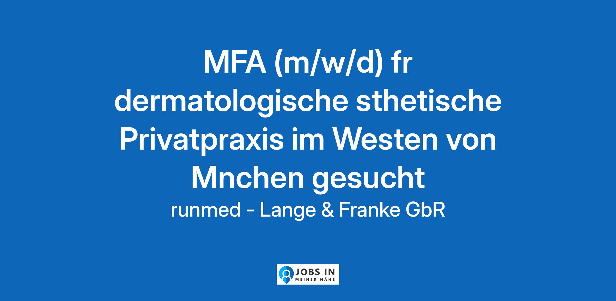 : MFA (m/w/d) fr dermatologische sthetische Privatpraxis im Westen von Mnchen gesucht