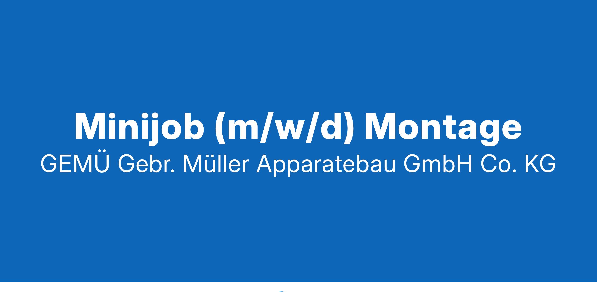Gemeinsam in die Zukunft - sind Sie dabei?Als Weltmarktführer entwickelt, produziert und verkauft die GEMÜ Gruppe Ventil-, Mess- und Regelsysteme. Zu unseren Kunden zählen global führende Unternehmen der Pharma- und Lebensmittelindustrie sowie der industriellen Wasseraufbereitung und Halbleiterfertigung. Weltweit setzen wir mit über 2.500 engagierten Mitarbeitenden Maßstäbe und führen unser innovatives, inhabergeführtes Familienunternehmen Richtung Zukunft.Werden Sie Teil der GEMÜ Familie!Ihre AufgabenWir suchen für unsere Montageabteilungen Verstärkung im SchichtbetriebIhr ProfilMindestalter 18 JahreBereitschaft zu SchichtarbeitZeitliche Verfügbarkeit 2-6 Monate mit Option auf VerlängerungZuverlässigkeit und sorgfältige ArbeitsweiseIhre Vorteile bei uns!Arbeitszeit: Flexibel - Lukrative SchichtmodelleArbeitsplatz: Modern - Innovativ - KlimatisiertGesundheit: Jobrad - Veranstaltungen - BewegungRestaurant: Frisch - Regional - Vielseitig - LeckerEinarbeitung: Individuell - Professionell - GemeinsamEvents: Spaß - Kulinarisch - Überraschend andersInteresse geweckt?Dann zögern Sie nicht und bewerben Sie sich direkt über unser Bewerberportal!Alternativ können Sie Ihre Bewerbungsunterlagen auch weiterhin per E-Mail an personal@gemue.de senden. Bitte achten Sie dabei darauf, dass alle Anhänge im PDF-Format vorliegen.Wir sind gespannt darauf, mehr über Sie zu erfahren und stehen Ihnen bei Fragen gerne zur Verfügung.Ansprechpartner