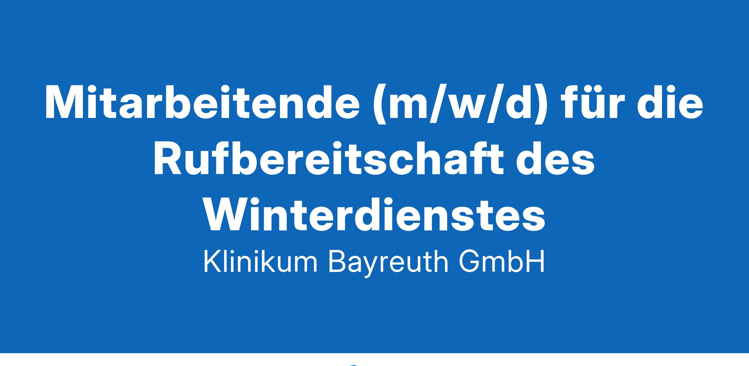 Die Klinikum Bayreuth GmbH erfüllt mit 28 Fachkliniken, 1.048 Betten und rund 3.500 Mitarbeitenden den Standard der Maximalversorgung und ist der führende Medizin-Dienstleister in Nordostoberfranken. Zudem ist die Klinikum Bayreuth GmbH mit ihren zwei Standorten in Bayreuth die überregional renommierte Anlaufstelle für Patientinnen und Patienten, die auf besonders hochwertige Versorgung Wert legen. Gemeinsam mit der Friedrich-Alexander-Universität Erlangen-Nürnberg, dem Universitätsklinikum Erlangen und der Universität Bayreuth steht die Klinikum Bayreuth GmbH für den Medizincampus Oberfranken. Hier absolvieren Medizin-Studierende den Klinischen Teil ihres Studiums. Damit bietet die Klinikum Bayreuth GmbH weit über die Region hinaus Diagnostik, Therapie, Forschung und Lehre auf universitärem Niveau und verbindet dies mit den Bedürfnissen und Anforderungen der Bevölkerung in Oberfranken nach einer umfassenden Gesundheitsversorgung. www.klinikum-bayreuth.deIhr ArbeitsbereichWir sind wie eine kleine Stadt - weil wir uns um Menschen, um unsere Patientinnen und Patienten bemühen. Wir sind ein tolles Team und einer der größten Arbeitgeber in der Region. Wir sind ein kommunal geführtes Krankenhaus, das seiner Verantwortung gerecht wird. Wir setzen auf flache Hierarchien und auf Menschen, die sich engagieren.Das sind Ihre AufgabenSie sind dafür verantwortlich, dass zu bestimmten Tages- und Nachtzeiten die Geh- und Zufahrtswege auf dem Gelände der Klinikum Bayreuth GmbH von Schnee und Eis freigehalten werden.