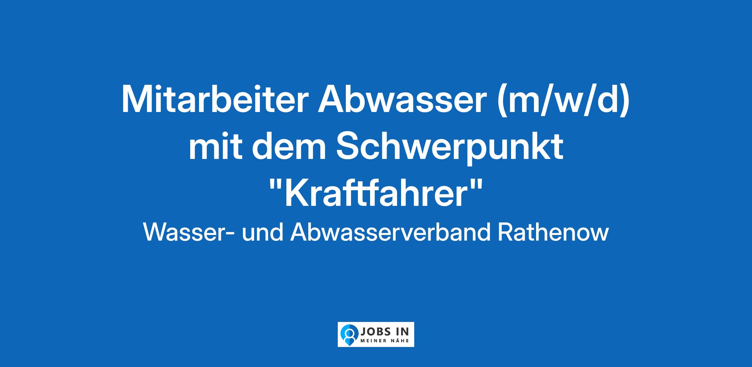 Zum nächstmöglichen Zeitpunkt sucht der WAV Rathenow einen Mitarbeiter Abwasser (m/w/d) mit dem Schwerpunkt "Kraftfahrer"