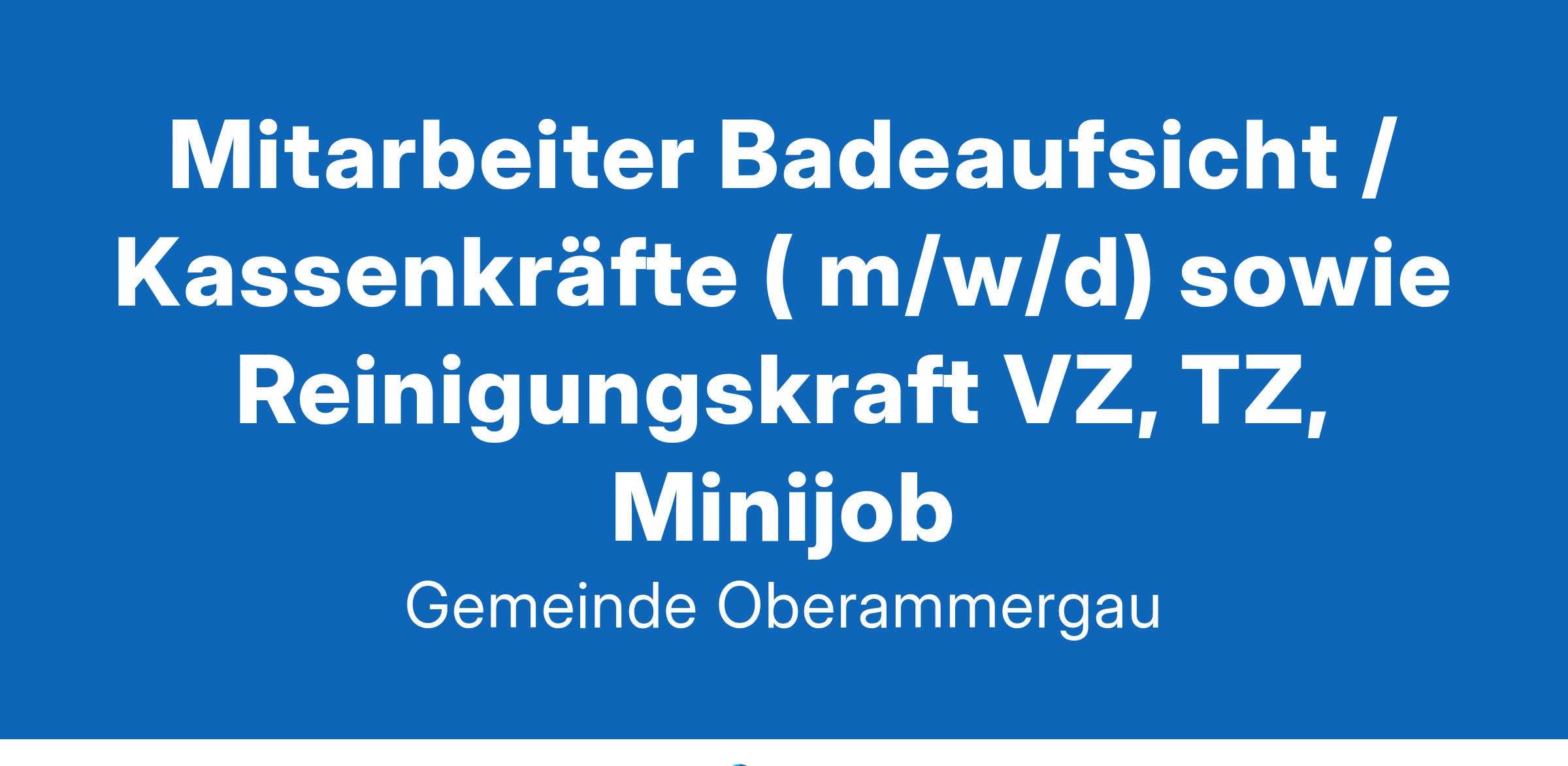 Mitarbeiter Badeaufsicht / Kassenkräfte ( m/w/d) sowie Reinigungskraft VZ, TZ, Minijob Gemeinde Oberammergau Die Gemeinde Oberammergau sucht für den