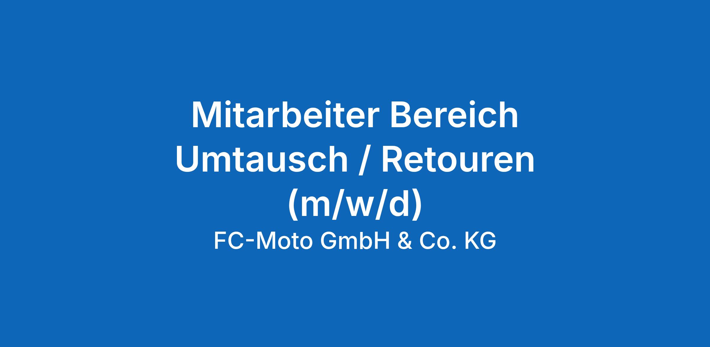Dann zögere nicht länger und schicke uns Deine Bewerbungsunterlagen inklusive Gehaltsvorstellung und schnellst möglichsten Eintrittstermin an: bewerbung@fc-moto.de