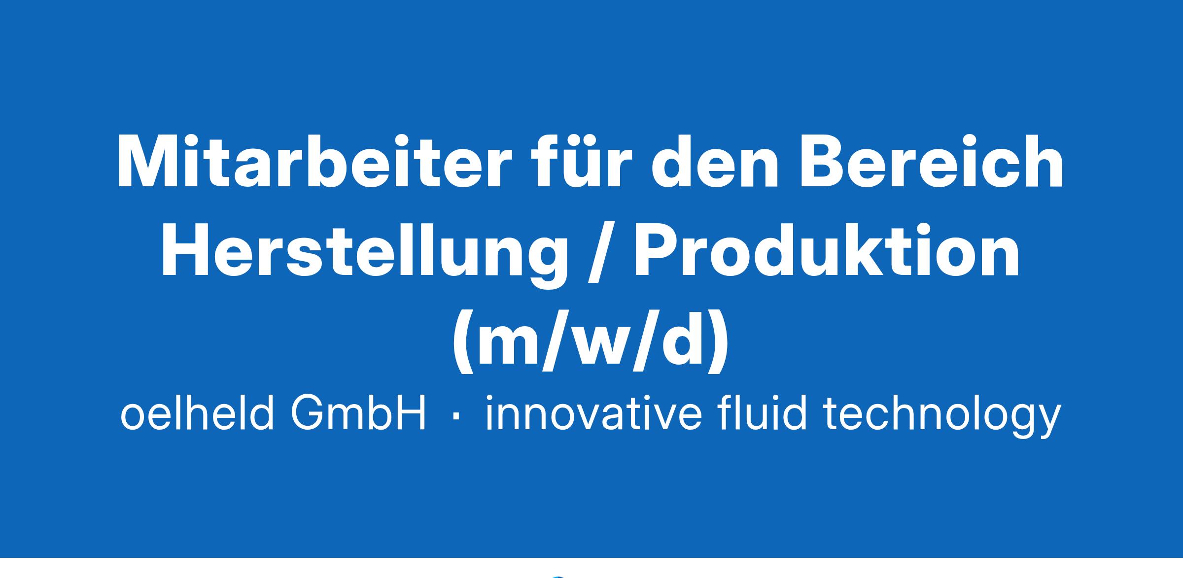 Mitarbeiter für den Bereich Herstellung / Produktion (m/w/d) Die oelheld GmbH ist ein mittelständisches Familienunternehmen, welches seit 1887 Schmierstoffe für die metallbearbeitende Industrie herstellt und international vertreibt. Bei Dielektrika und Schleifölen besitzt oelheld eine Innovationsführerschaft, die wir unseren Werten Partnerschaft, Forschung und Human Technology verdanken. Diese bilden eine Tradition, auf die wir stolz sind. Für unsere Abteilung Produktion suchen wir zum nächstmöglichen Zeitpunkt einen Mitarbeiter für den Bereich Herstellung / Produktion (m/w/d)