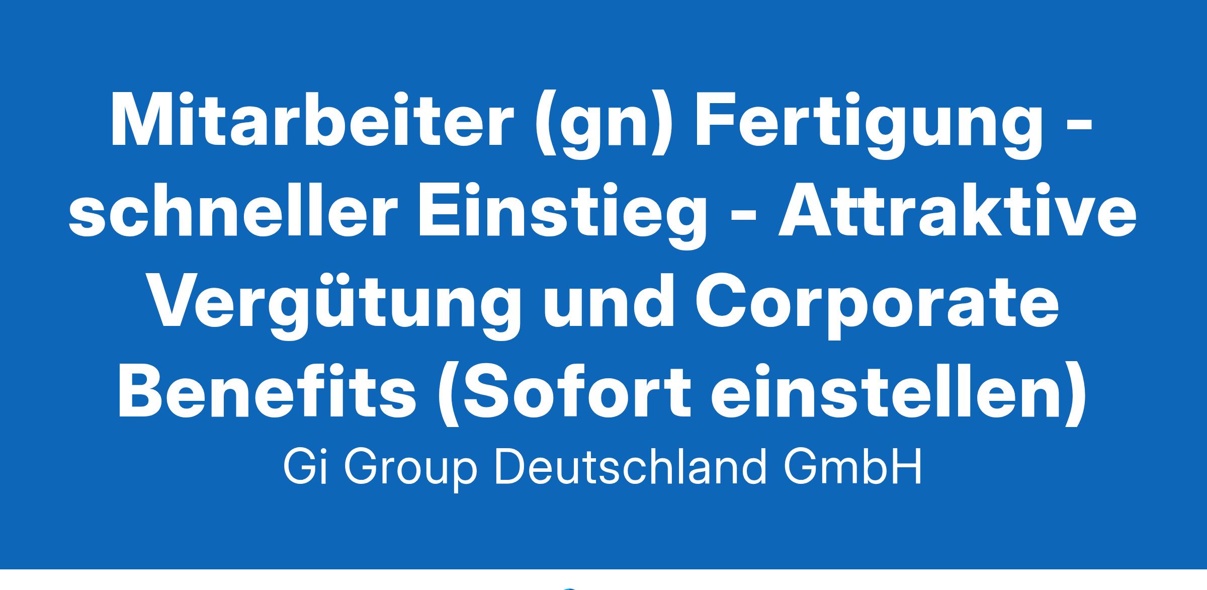 Mitarbeiter (gn) Fertigung - schneller Einstieg ab sofort in Vollzeit nahe Karlsruhe Die Gi Group ist ein international agierender Personaldienstleister mit mehr als 500 Standorten in 40 Ländern. Deine Aufgaben Zusammenbau von Elektro-Modulen und Großgeräten Tests und ggf. Reparaturen Qualitätskontrolle und Überprüfung der Baugruppen Einhaltung der Qualitäts- und Zuverlässigkeitsstandards sowie Datenpflege Dein Profil als Mitarbeiter Technisches Interesse und handwerkliches Geschick Rasche Auffassungsgabe und Qualitätsbewusstsein Teamfähig- und Zuverlässigkeit Bereitschaft zur Schichtarbeit Unser Angebot Attraktive Vergütung und einen langfristigen Einsatz in einem unserer top Kundenunternehmen Gute Erreichbarkeit mit dem PKW und nahegelegene Parkplätze vorhanden Zahlreiche Mitarbeitervorteile in Form von Corporate Benefits Vielfältige Entwicklungsmöglichkeiten mit dem Netzwerk eines internationalen Unternehmens Deine Bewerbung Für Deine Bewerbung als Mitarbeiter klicke bitte einfach auf „Jetzt bewerben“. Dort kannst Du Deine Kontaktdaten eingeben sowie Deinen Lebenslauf und Deine Bewerbungsunterlagen hochladen. Du benötigst dafür nur ca. 1 Minute. Dein zuständiger Personaldisponent wird sich bei Dir schnellstmöglich melden. Gerne kannst Du uns auch Deine Bewerbungsunterlagen per E-Mail zusenden. Wir freuen uns auf Deine Bewerbung! Unsere Stellenangebote richten sich an Arbeitssuchende jeglichen Geschlechts. (gn) = geschlechtsneutral. Kontakt Gi Group Recruiting Team