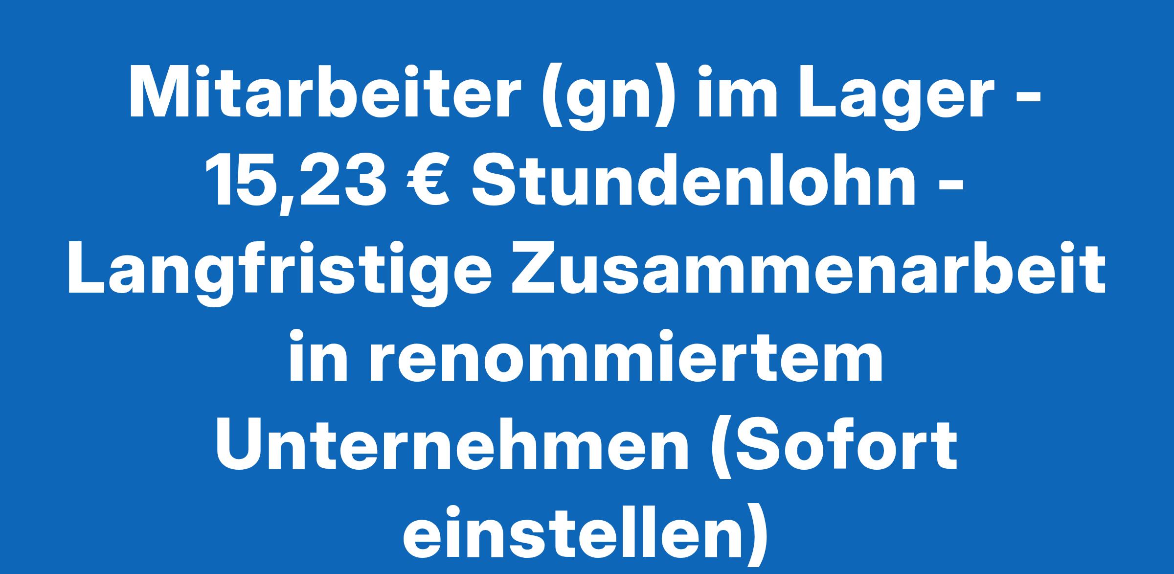 Mitarbeiter (gn) im Lager - 15,23 € Stundenlohn - Langfristige Zusammenarbeit in renommiertem Unternehmen (Sofort einstellen)