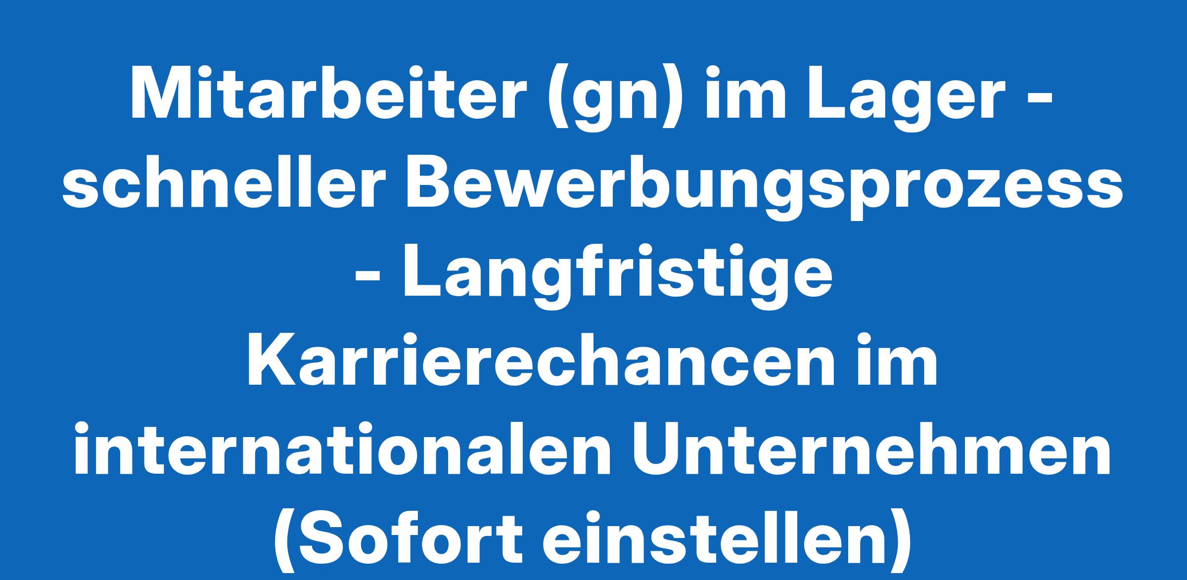 Mitarbeiter (gn) im Lager - schneller Bewerbungsprozess - Langfristige Karrierechancen im internationalen Unternehmen (Sofort einstellen)
