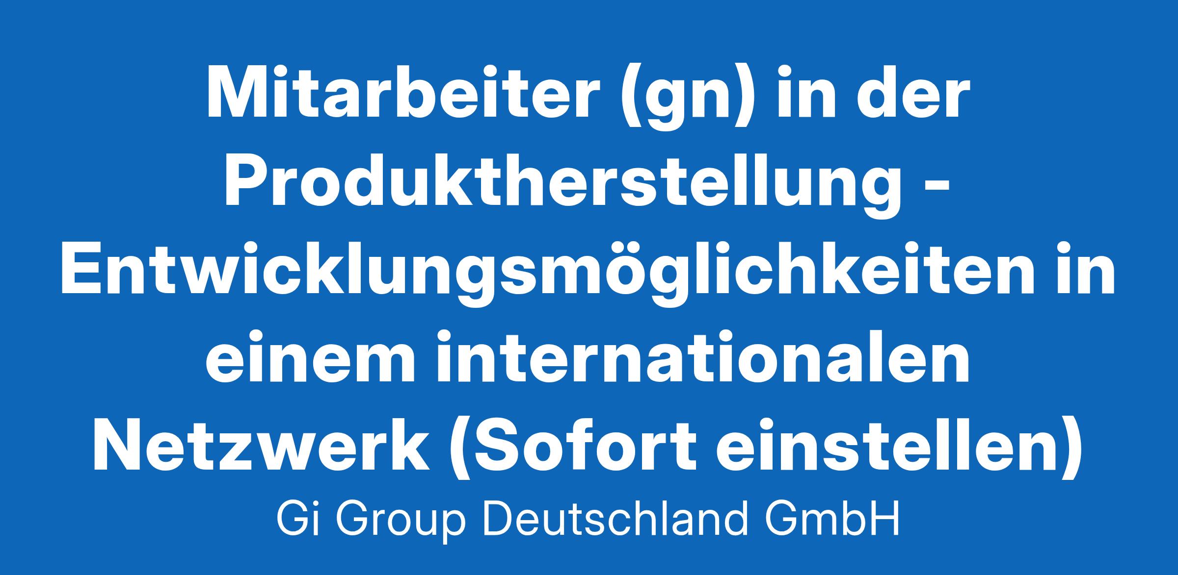 Mitarbeiter (gn) in der Produktherstellung - Entwicklungsmöglichkeiten in einem internationalen Netzwerk (Sofort einstellen)