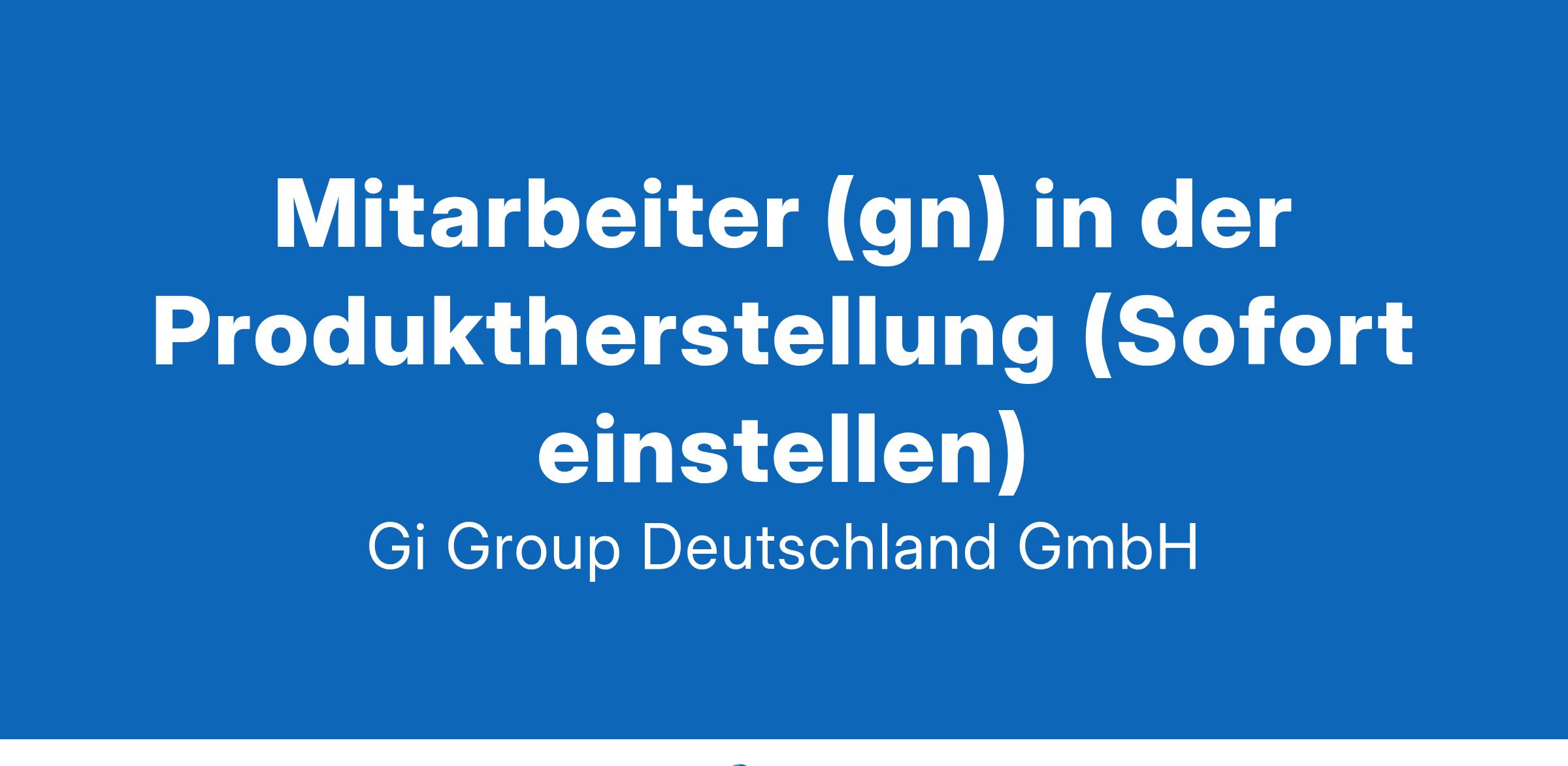 Mitarbeiter (gn) in der Produktherstellung ab sofort in Vollzeit nahe Karlsruhe Die Gi Group ist ein international agierender Personaldienstleister mit mehr als 500 Standorten in 40 Ländern. Unser Angebot Attraktive Vergütung ab 15,23 €/Std.steigend mit Betriebszugehörigkeit Einen langfristigen Einsatz in einem unserer top Kundenunternehmen Gute Erreichbarkeit mit dem PKW und nahegelegene Parkplätze vorhanden Entwicklungsmöglichkeiten mit dem Netzwerk eines internationalen Unternehmens Dein Profil  Erste Arbeitserfahrung in Produktionsumgebungen und Reinraum (wünschenswert) Bereitschaft in Wechselschicht (Früh- oder Spätschicht) zu arbeiten Gute Deutschkenntnisse mind. B Level in Wort und Schrift Fingerfertigkeit, Nichtraucher und kein Make-up Deine Aufgaben Herstellung von Screen Tapes  Regelmäßige Qualitätskontrollen und einfache Fehlerbehebungen Kontinuierliche Reinigung und Inspektion des Produktions-Equipments Überwachung und Sicherstellung des Materialflusses Deine Bewerbung als Mitarbeiter Für Deine Bewerbung als Mitarbeiter klicke bitte einfach auf „Jetzt bewerben“. Dort kannst Du Deine Kontaktdaten eingeben sowie Deinen Lebenslauf und Deine Bewerbungsunterlagen hochladen. Du benötigst dafür nur ca. 1 Minute. Dein zuständiger Personaldisponent wird sich bei Dir schnellstmöglich melden. Gerne kannst Du uns auch Deine Bewerbungsunterlagen per E-Mail zusenden. Wir freuen uns auf Deine Bewerbung! Unsere Stellenangebote richten sich an Arbeitssuchende jeglichen Geschlechts. (gn) = geschlechtsneutral. Kontakt Gi Group Recruiting Team