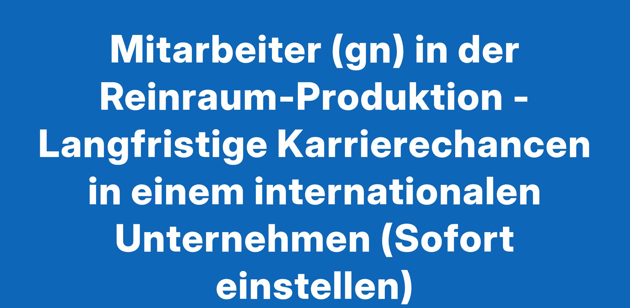 Mitarbeiter (gn) in der Reinraum-Produktion - Langfristige Karrierechancen in einem internationalen Unternehmen (Sofort einstellen)