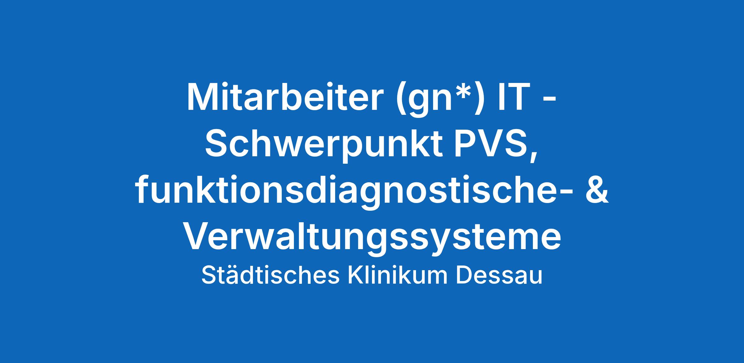 Mitarbeiter (gn*) IT – Schwerpunkt PVS, funktionsdiagnostische- & Verwaltungssysteme