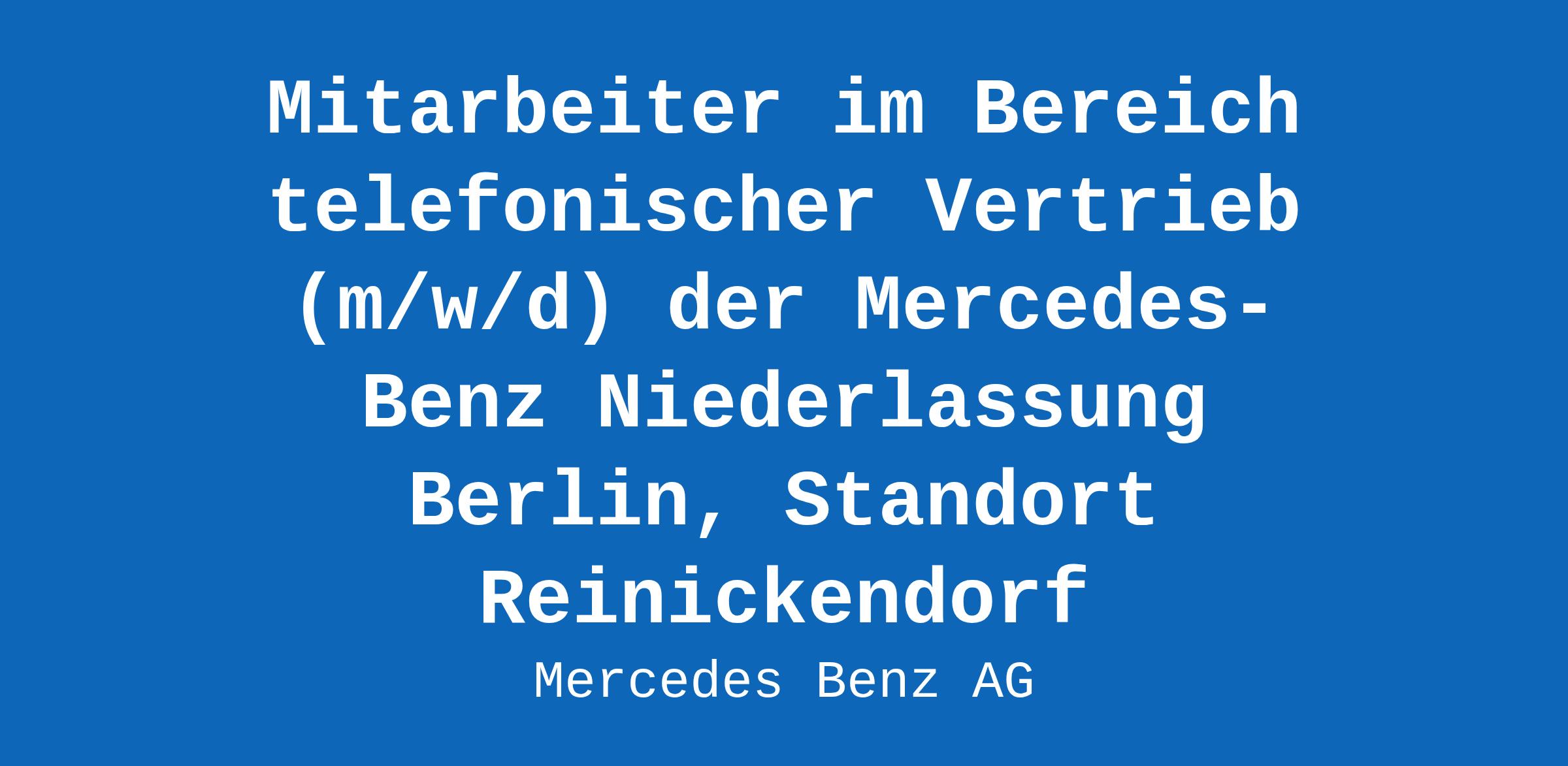 Mitarbeiter im Bereich telefonischer Vertrieb (m/w/d) der Mercedes-Benz Niederlassung Berlin, Standort Reinickendorf