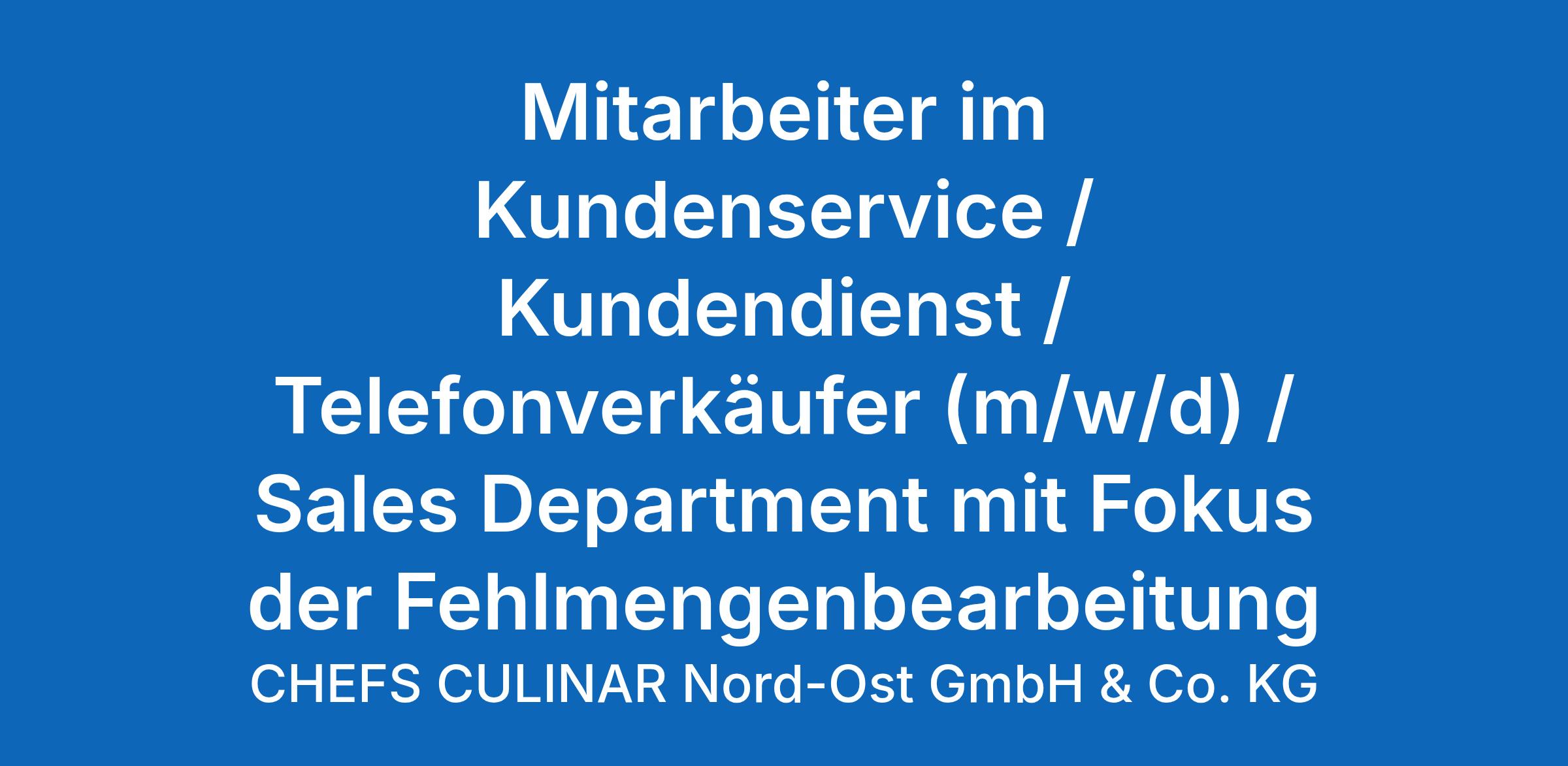 Mitarbeiter im Kundenservice/ Kundendienst/ Telefonverkäufer (m/w/d) / Sales Department mit Fokus der Fehlmengenbearbeitung in Vollzeit (39,0 Std./ Woche)