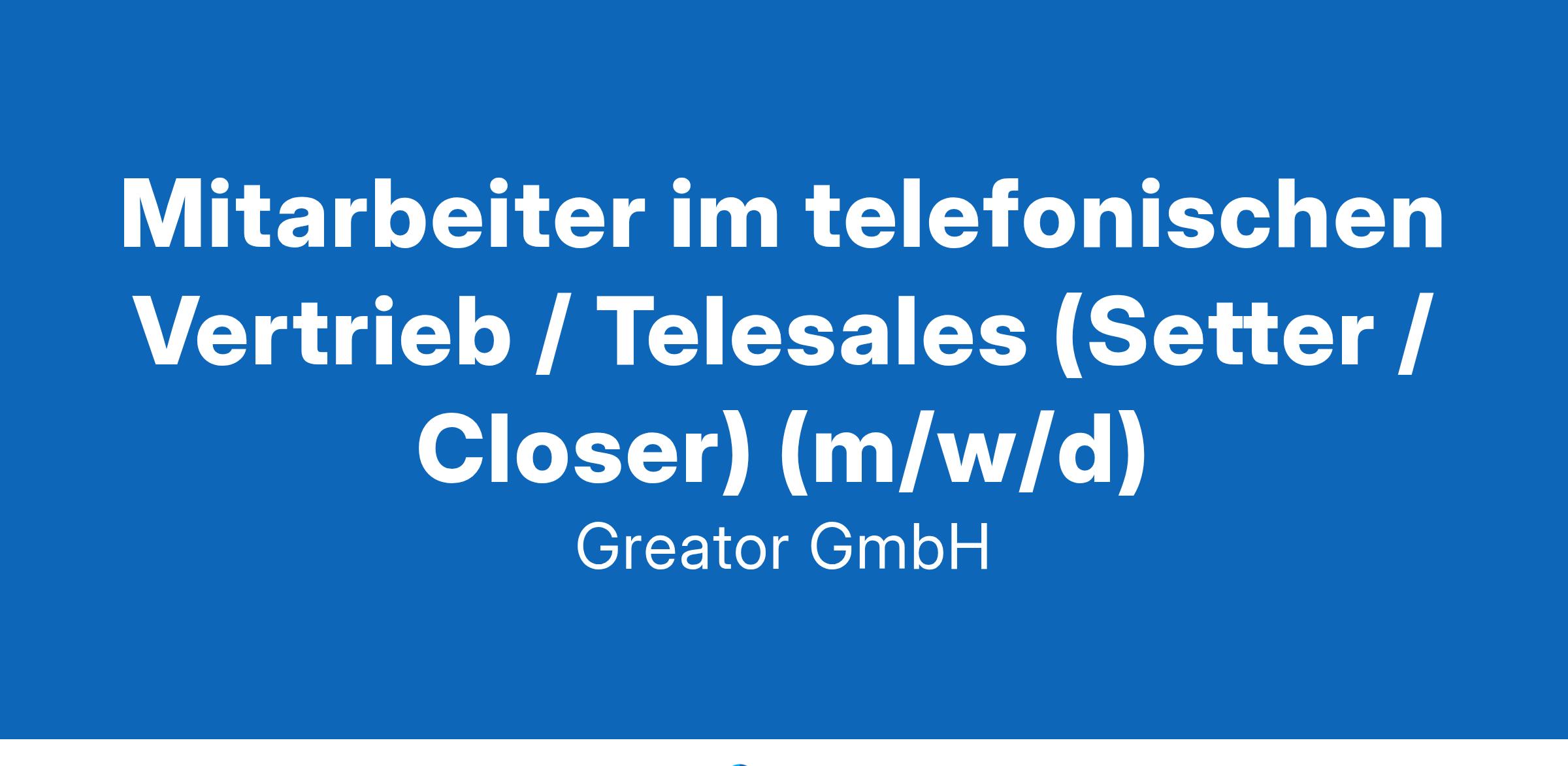 Mitarbeiter im telefonischen Vertrieb / Telesales (Setter / Closer) (m/w/d)