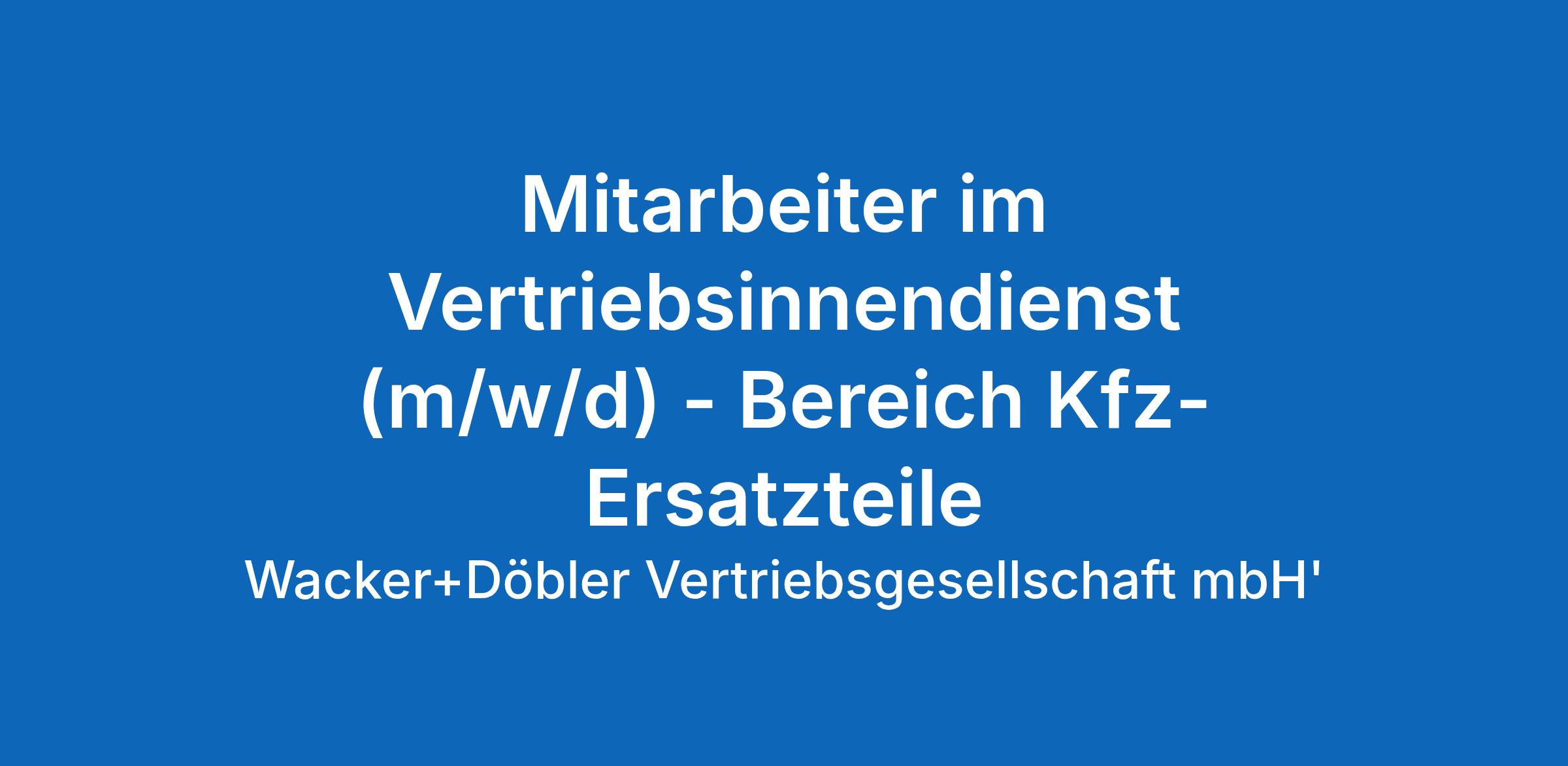 Mitarbeiter im Vertriebsinnendienst (m/w/d) - Bereich Kfz-Ersatzteile