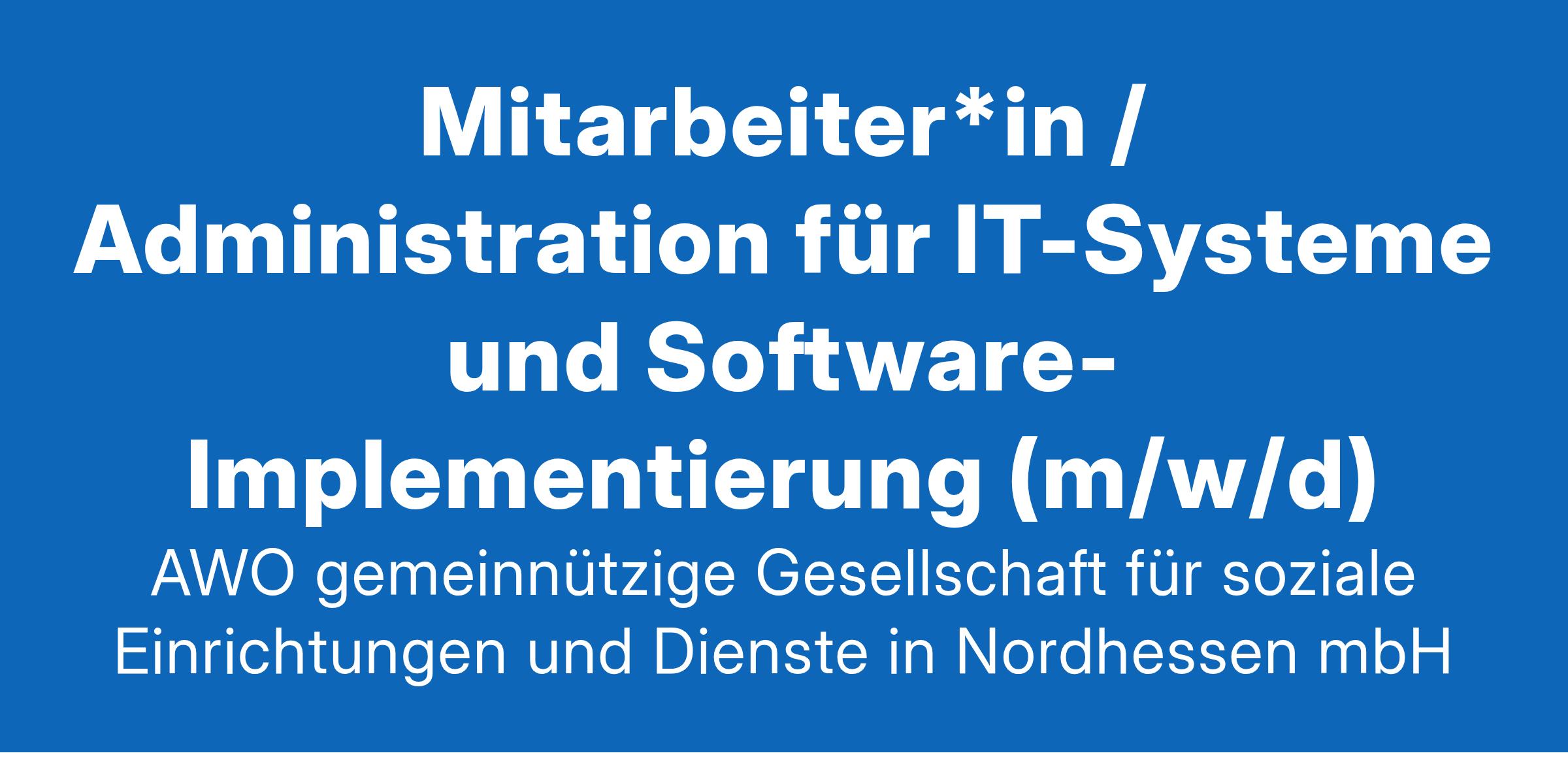 Mitarbeiter*in / Administration für IT-Systeme und Software-Implementierung (m/w/d) ICH GEH JETZT ZUR AWO – weil meine Arbeit wichtig ist. Komm zur AWO Nordhessen, wo Du Verantwortung bekommst und dabei die Anerkennung erhältst, die Du verdienst! Wir tragen als führendes soziales Unternehmen bereits Verantwortung für rund 3.000 Mitarbeitende in Nord- und Osthessen. Hier ist Deine Chance! Wir suchen zum nächstmöglichen Zeitpunkt eine*n Softwarespezialist*in in Vollzeit oder Teilzeit und unbefristeter Beschäftigung für unsere zentrale Geschäftsstelle in Kassel. Deine Aufgabe Verantwortung übernehmen: Du leitest die Implementierung neuer Softwareprodukte für unsere Alten-, Kinder- und Jugendhilfe (z.B. ERP, Pflegedokumentation, DMS, Microsoft 365) und sorgst für deren erfolgreichen Rollout. Schnittstellenmanagement: Du administrierst die Schnittstellen zwischen unseren Softwarelösungen und garantierst einen reibungslosen Datenfluss. Expertise aufbauen: Du wirst zur Expert*in für unsere Softwarelandschaft und gibst dein Wissen an das Team weiter. Anwender*innen-Support: Du bist die erste Anlaufstelle für unsere Endanwender*innen und unterstützt sie bei allen Fragen rund um unsere Softwarelösungen. Systemweiterentwicklung: Du bringst deine Ideen ein und arbeitest aktiv an der Weiterentwicklung und Optimierung unserer bestehenden Systeme. Deine Vorteile Ein abwechslungsreicher und verantwortungsvoller Job: Bei uns übernimmst spannende Tätigkeiten in einem dynamischen Team und modernem Arbeitsumfeld. Ein sicherer Arbeitsplatz mit attraktiver Vergütung: zusätzlich zur leistungsorientierten Vergütung kommen umfangreiche Sozialleistungen sowie ein Erfolgsbonus. Hierzu beraten wir gerne. Flache Hierarchien und kurze Entscheidungswege : Bei uns kannst du Dich und Deine Ideen einbringen. Flexible Arbeitszeiten : Die Vereinbarkeit von Familie und Beruf ist uns wichtig. Hier sind wir flexibel miteinander. Ein Job mit Sinn: Du trägst mit Deinen Kompetenzen und Erfahrungen dazu bei, die Arbeit unserer Alten-, Kinder- und Jugendhilfe zu ermöglichen. Die AWO Nordhessen trägt bereits Verantwortung für rund 3.000 Mitarbeitende: Ob für Deine berufliche Entwicklung und bei der Vereinbarkeit von Familie und Beruf - wir bieten Dir die Vorteile eines erfolgreichen sozialen Unternehmens. Eine professionelle Einarbeitung ist die Basis. Dein Profil Du verfügst über ein abgeschlossenes Studium im Bereich Wirtschaftsinformatik, IT-Management, Software Engineering oder ein vergleichbares Studium mit Bezug zum Aufgabenprofil. Du hast bereits praktische Erfahrungen in der Neuimplementierung und Betreuung von Softwareprojekten gesammelt. Kolleg*innen schätzen an dir deine ausgeprägte Kommunikationsfähigkeit und strukturierte, selbständige Arbeitsweise sowie deine Problemlösekompetenzen . Du besitzt einen Führerschein der Klasse B um die Einrichtungen mit einem unserer Pool-Wagen zu erreichen. Du identifizierst dich mit den Werten der AWO : Wir treten für Freiheit, Gleichheit, Gerechtigkeit, Solidarität und Toleranz ein. Wir machen keine Unterschiede in Herkunft, Geschlecht, sexueller Orientierung oder Religion. Wir fördern die Vielfalt und Einzigartigkeit, die jeder Mensch mitbringt. Wenn Du Dich in diesem Profil wiederfindest und Teil unseres Teams werden möchtest, freuen wir uns auf Deine Bewerbung! Bitte nutze vorzugsweise unser Onlineformular für die Übersendung Deiner persönlichen Bewerbung bis zum 15.2.2025 oder sende diese alternativ an folgende Adresse: AWO gemeinnützige Gesellschaft für soziale Einrichtungen und Dienste in Nordhessen mbH z.Hd. Michael Lohmann Wilhelmshöher Allee 32 A 34117 Kassel www.karriere.awo-nordhessen.de Bitte sende Deine Bewerbungsunterlagen per Post immer in Kopie und nicht in Mappen mit Originalen. Es erfolgt keine Rücksendung. Alle überlassenen Daten werden unter Beachtung des Datenschutzes behandelt und gelöscht bzw. vernichtet.