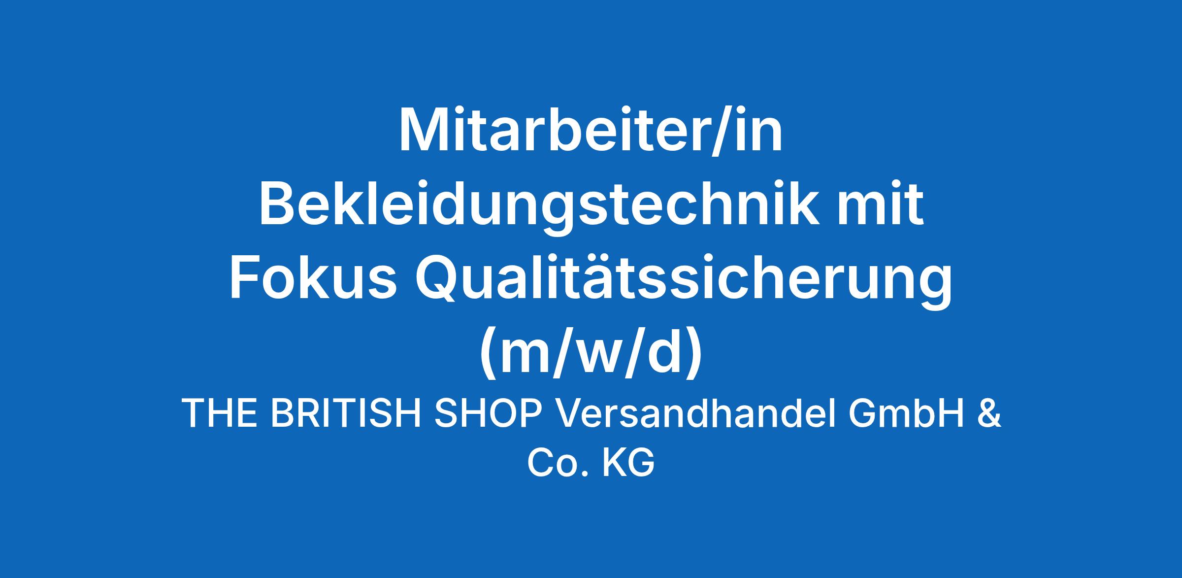 Mitarbeiter/in Bekleidungstechnik mit Fokus Qualitätssicherung (m/w/d)