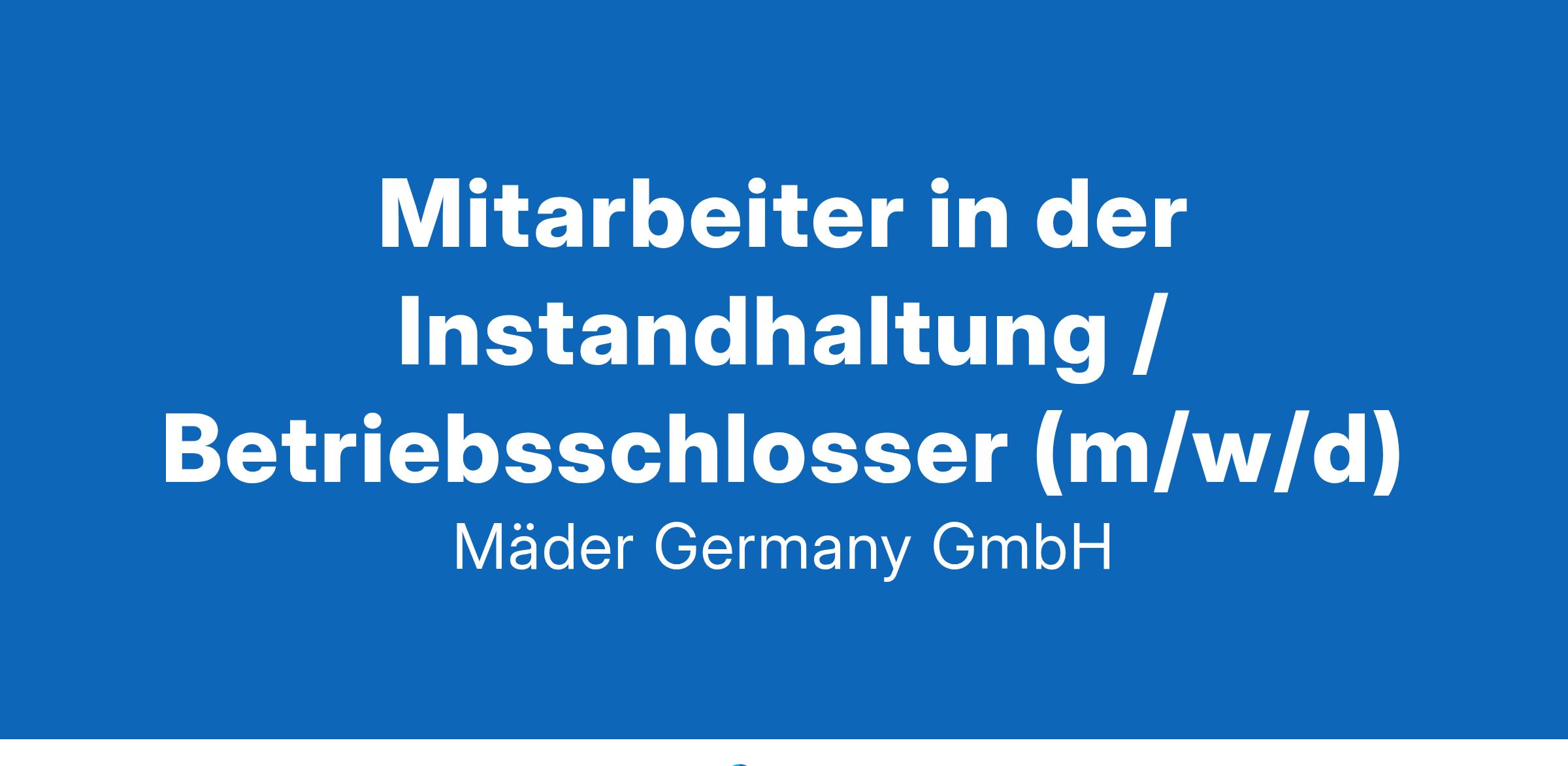 MÄDER entwickelt Innovationen für die Welt von heute... und von morgen! Die Mäder Group ist ein wichtiger Partner im Hightech Sektor von Beschichtungsstoffen. Durch unsere weltweite Präsenz ermöglichen wir die direkte Nähe zu unseren Kunden. Unsere Produktlösungen und Serviceleistungen haben zum Ziel, die spezifischen Anforderungen der anspruchsvollen Märkte zu erfüllen und dadurch einen Mehrwert zu generieren. Unsere Zielmärkte sind hauptsächlich die Schienenfahrzeug-, Automobil- und Luftfahrtindustrie. Unser e-care Umweltschutzprogramm verpflichtet die Mäder Group, ein Vorreiter bei der Entwicklung neuer Technologien zu sein. Wir leisten einen großen Anteil an einer schonenden Ressourcennutzung und setzen uns für ein Gleichgewicht zwischen Natur und Mensch ein. Für unseren Standort in Strullendorf suchen wir ab sofort in Festanstellung einen Mitarbeiter in der Instandhaltung / Betriebsschlosser (m/w/d) Das bieten wir Dir: Abwechslungsreiche Aufgaben mit viel Eigenständigkeit Attraktive Vergütung Urlaubsgeld und weitere Sonderzahlungen Weitere Benefits: Betriebliche Altersvorsorge mit AG-Zuschuss, Jobrad, Gutscheinkarte (50 € pro Monat steuer- und sozialversicherungsfrei), Vorteilsportal für Mitarbeiterangebote (dauerhafte Preisnachlässe bei Top-Markenanbietern) Zeit für die Familie – Flexibles Arbeitszeitsystem (Regelarbeitszeit von Montag bis Freitag) 30 Tage Urlaub Firmenevents Arbeitskleidung Kostenlose Parkplätze Deine Aufgaben: Durchführung von Instandsetzungsarbeiten (Störungsbehebung) Durchführung von Montage- und Installationsarbeiten Durchführung von vorbeugenden Instandhaltungsmaßnahmen (Wartungen) Einbinden von Chemieschlauchleitungen Einhaltung und Durchsetzung aller gesetzlichen und betrieblichen Vorschriften bei der Ausführung von Instandhaltungs- und Montagearbeiten und beim Betrieb der Betriebsmittel und Versorgungseinrichtungen Dokumentation der Instandhaltungsarbeiten in der EDV Kostenerfassung von Arbeitsaufträgen in der Instandhaltungssoftware Beschaffung von MRO-Artikeln (Maintenance Repairs an Others) Umsetzung des SSB und VPC Prozesses im Verantwortungsbereich Das wünschen wir uns: Ausbildung zum Industriemechaniker, Maschinenschlosser, Bauschlosser, Metallbauer oder Mechatroniker Mehrjährige Berufserfahrung als Betriebsschlosser oder Metallbauer in einem Industriebetrieb oder Handwerksbetrieb, wünschenswert in der Chemischen Industrie Kenntnisse in der Montage und dem Betrieb von Versorgungseinrichtungen, wie z.B. Heizungs- und Wassersystemen Maschinenbaukenntnisse über Pumpen, Antriebe, Ventile, usw. Schweißerpass oder fundierte Schweißkenntnisse Ex-Schutz Kenntnisse Werkstoffgrundkenntnisse Grundkenntnisse Elektrotechnik Pneumatik- und Hydraulikkenntnisse EDV-Grundkenntnisse (Windows, MS Office) Ausgeprägtes Sicherheits- und Verantwortungsbewusstsein Organisationstalent und Durchsetzungsvermögen Eigenverantwortliches und kostenbewusstes Arbeiten Hohe Motivation, Flexibilität und Belastbarkeit Teamfähigkeit und Verlässlichkeit Mit unserem kollegialen und dynamischen Team freuen wir uns auf Deine Unterstützung bei der Umsetzung unserer zukünftigen Ziele! Worauf wartest Du noch? Bewirb Dich jetzt! Mäder Germany GmbH Frau Steffi Hess - Personalabteilung Reinhard-Reichnow-Str. 4 96129 Strullendorf +49 (0) 95 43 / 65 193 recruitment-de@mader-group.com